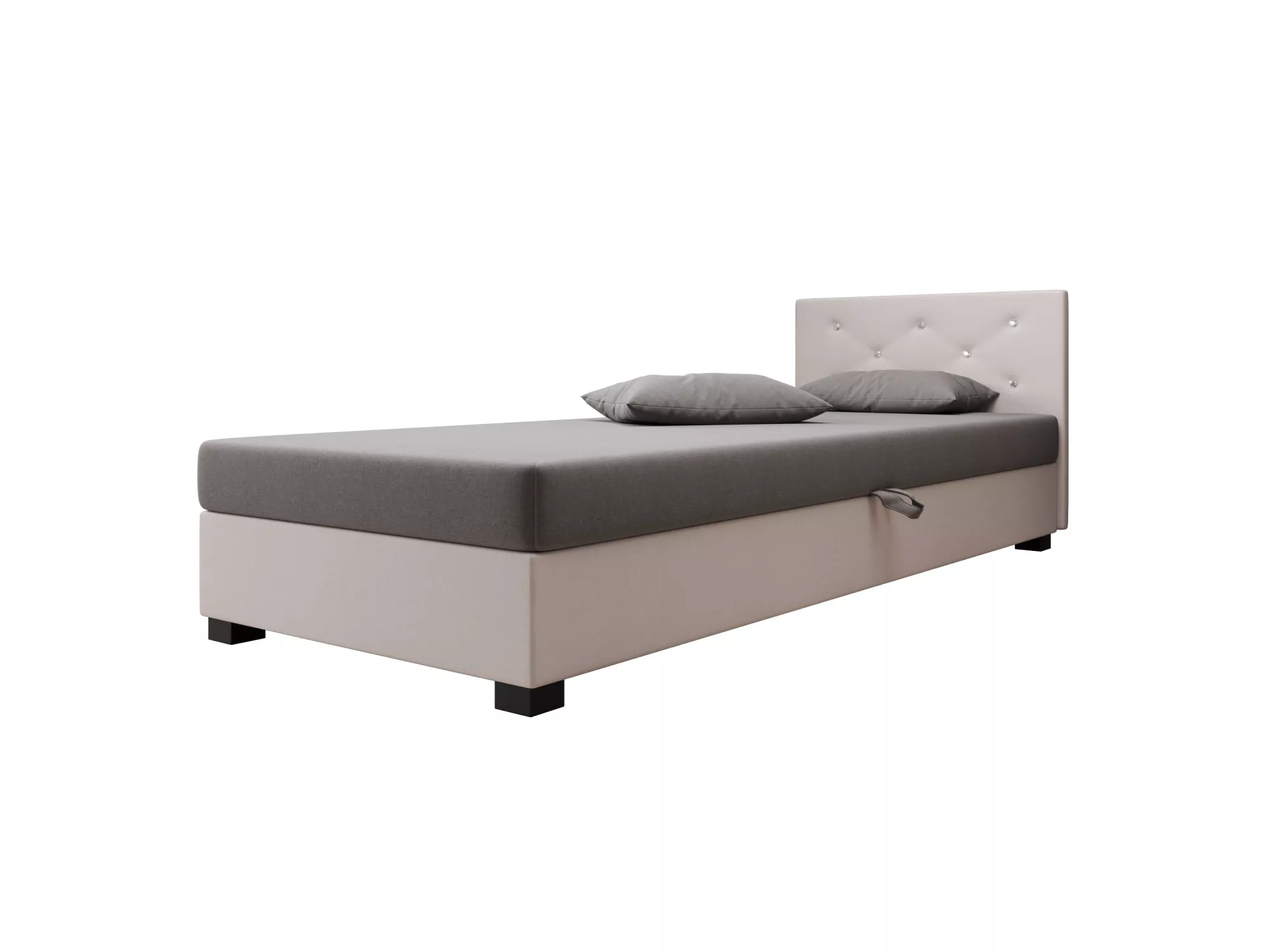 Čalouněná postel 120x195 MILEKA 1 zaujme především svým prošívaným čelem s ozdobnými knoflíky. Pohodlná matrace poskytne veškerý komfort při odpočinku a relaxaci. Postel disponuje prostorným úložným prostorem, kde můžete schovat lůžkoviny nebo sezónní oblečení.