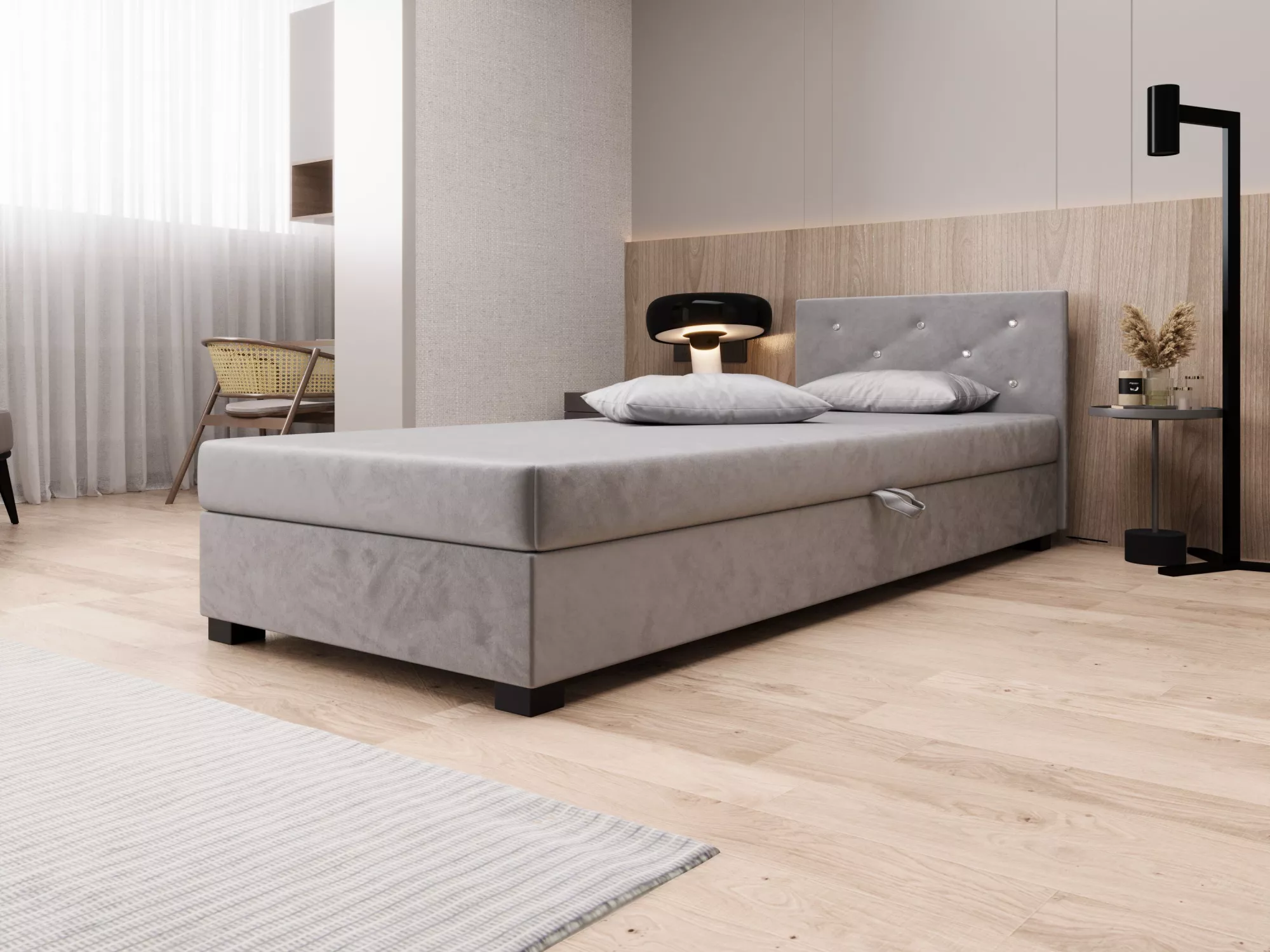Čalouněná postel 80x195 MILEKA 1 zaujme především svým prošívaným čelem s ozdobnými knoflíky. Pohodlná matrace poskytne veškerý komfort při odpočinku a relaxaci. Postel disponuje prostorným úložným prostorem, kde můžete schovat lůžkoviny nebo sezónní oblečení.