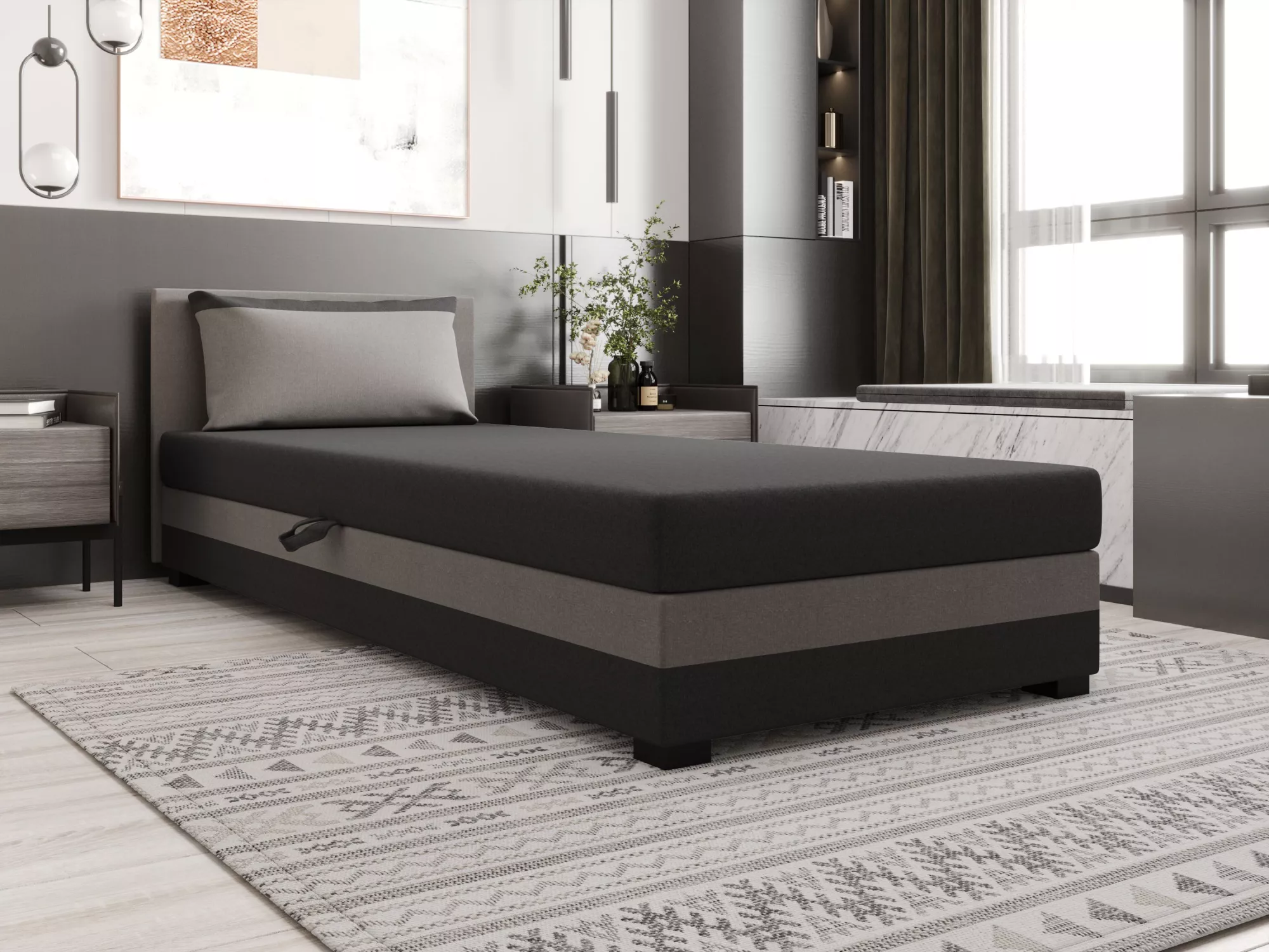 Jednolůžková postel 80x195 ZAJDA 1 s úložným prostorem svým jednoduchým minimalistickým designem zapadne do každého studentského pokoje. Vysoké čalouněné čelo zabrání poškrábání a zašpinění zdi. Příjemná potahová látka zvýší komfort používání.