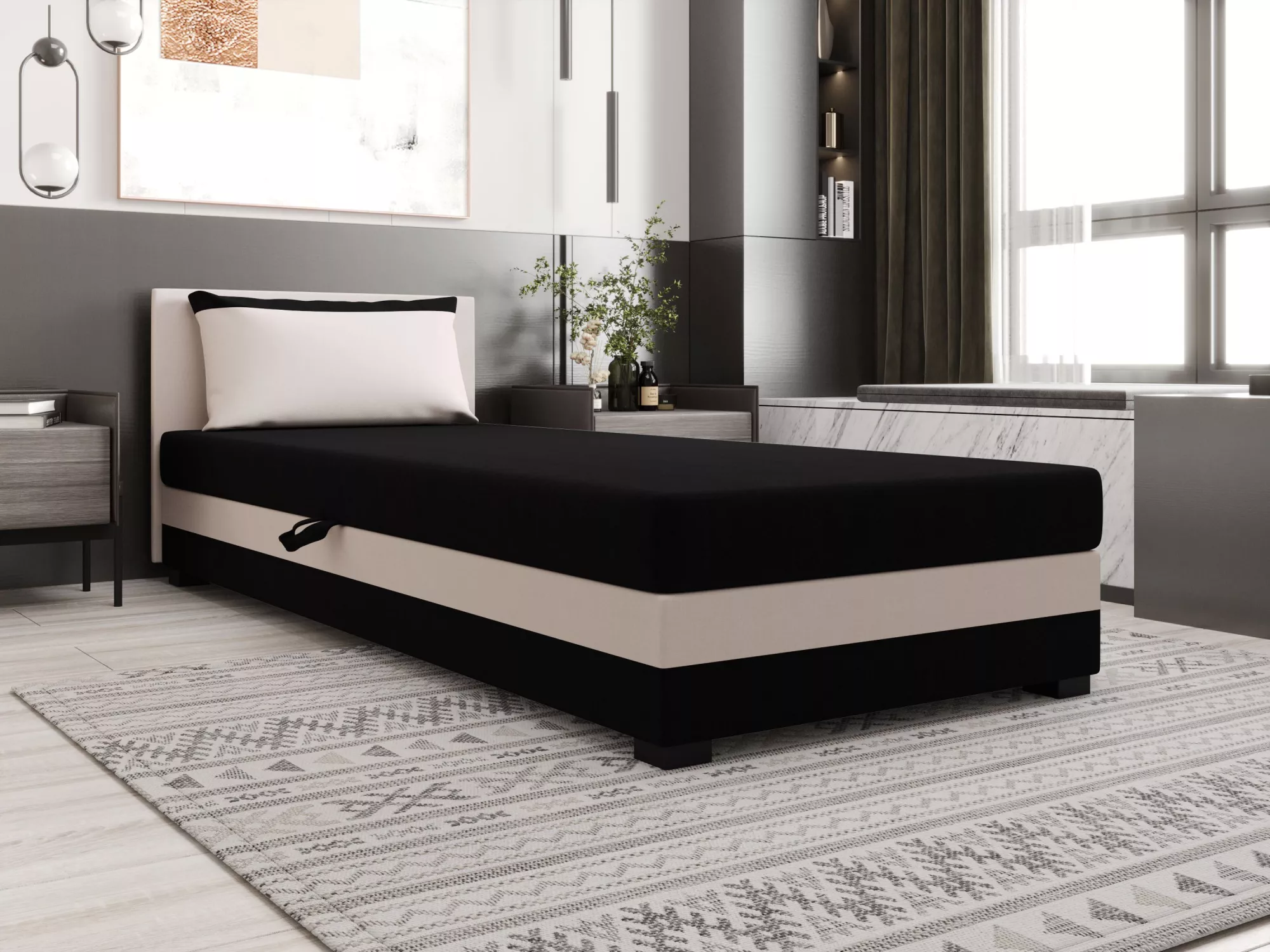 Jednolůžková postel 120x195 ZAJDA 1 s úložným prostorem - černá / ecru
