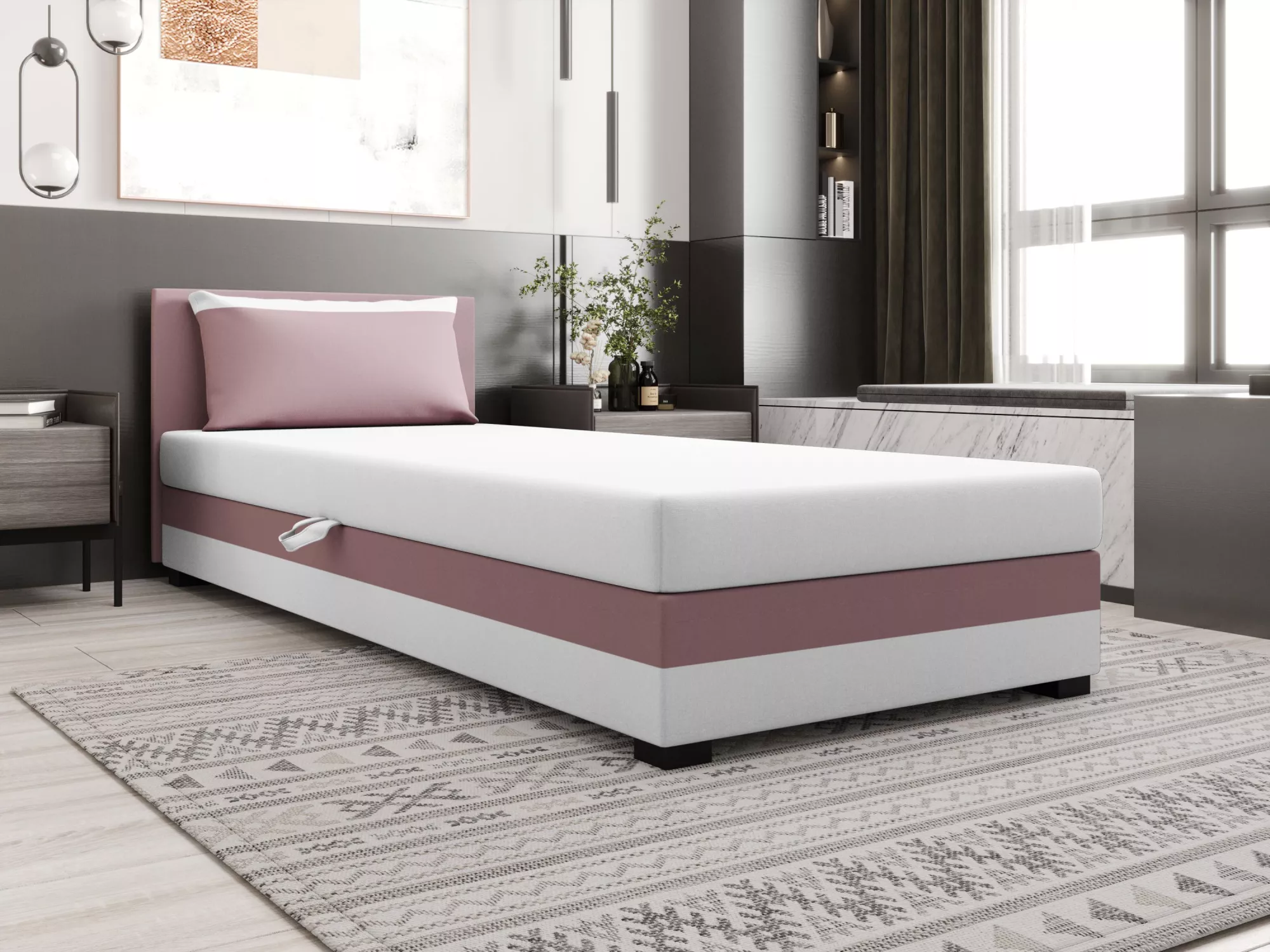 Jednolůžková postel 100x195 ZAJDA 2 s úložným prostorem - růžová / bílá