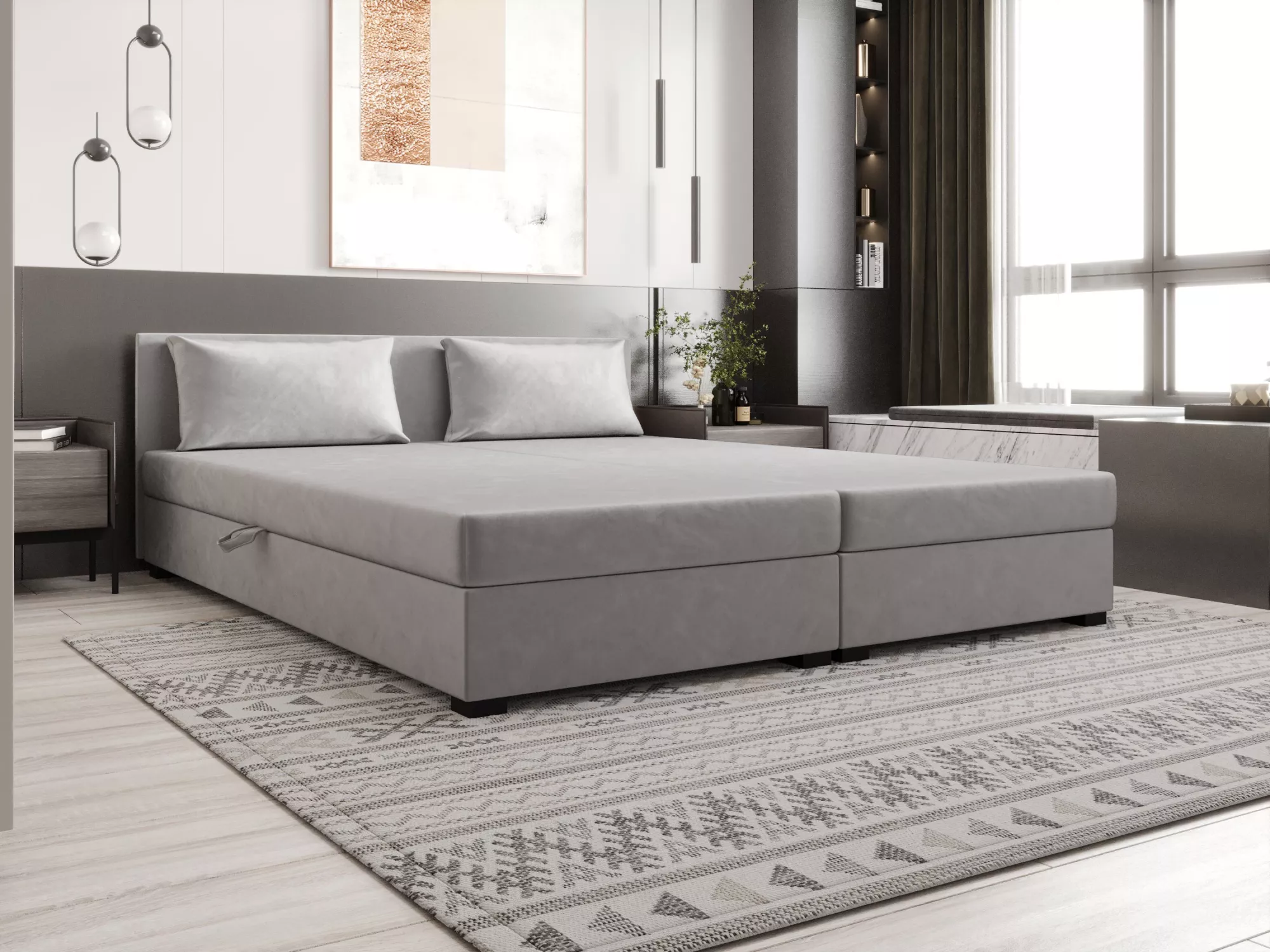 Manželská postel 180x200 ZAJDA DOUBLE 2 s úložným prostorem - světle šedá
