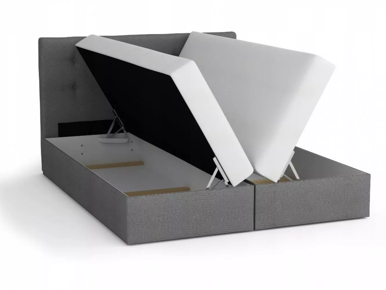 Chcete spát jako na obláčku? Nejluxusnější spaní nabízí postel SISI boxspringového typu. Její součástí je úložný prostor, rošt i matrace. Ložná plocha o velikosti 140 × 200 cm se nachází ve výšce 47 cm, což znamená, že se vám bude z postele lehce vstávat, ale také se do ní bude pohodlně uléhat. Je složená ze dvou matrací. Matrace jsou vyrobeny z bonellových pružin a PUR pěny a jejich výška včetně roštu činí 19 cm. Postel je možné používat jako manželské „letiště“, ale také jako dvě samostatná lůžka.