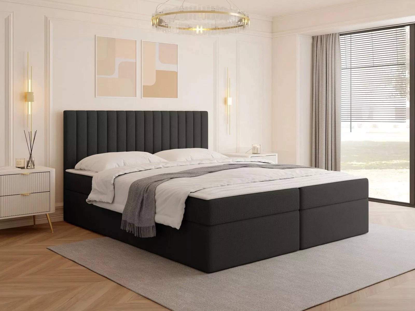 Boxspringová manželská postel 160x200 VASHON 1 - černá + topper ZDARMA