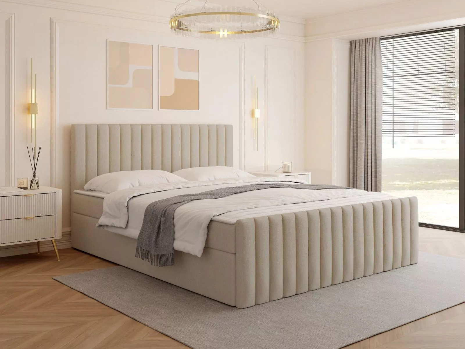 Kontinentální manželská postel 180x200 VASHON 2 - světlá béžová + topper ZDARMA
