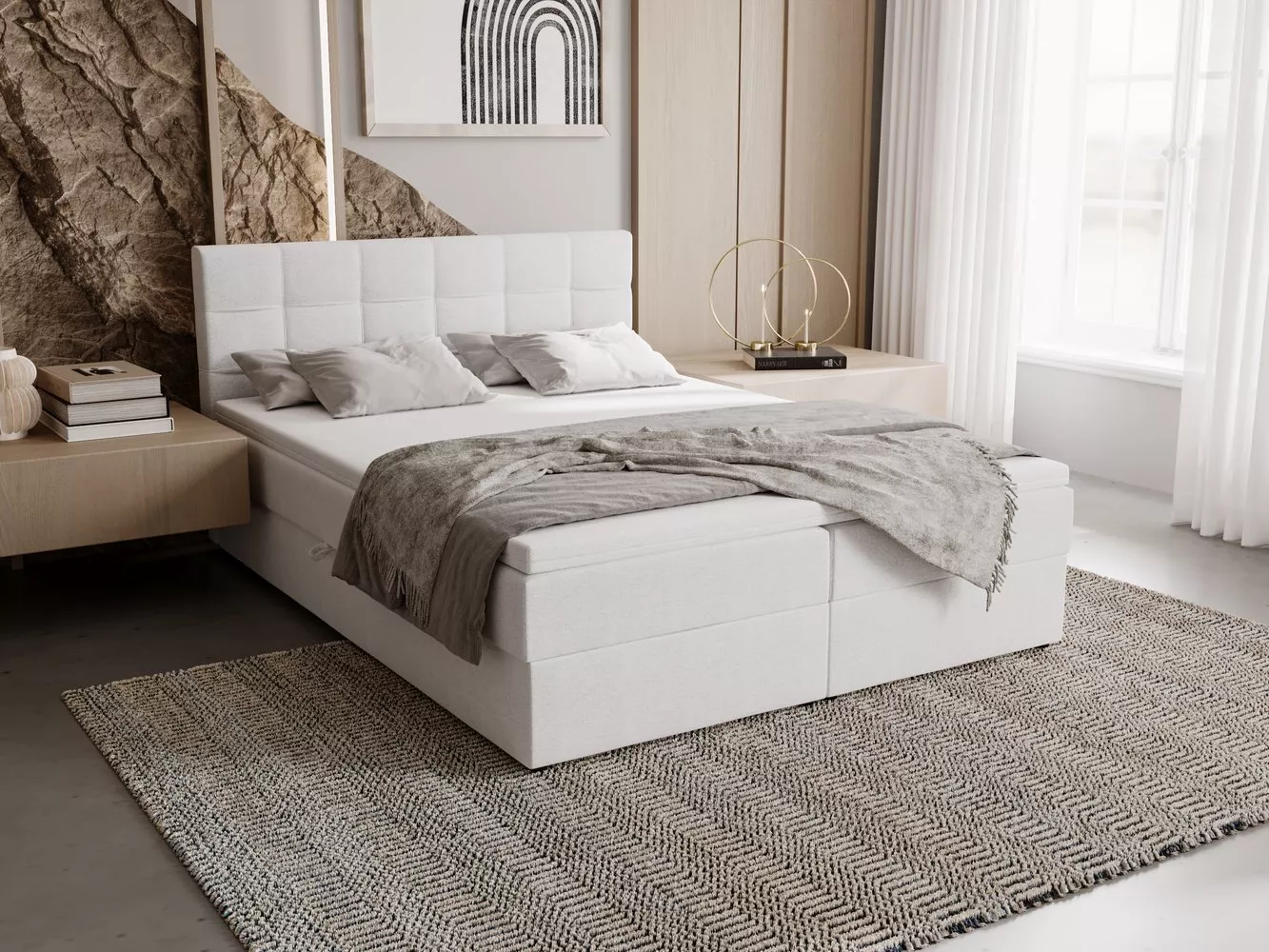 Boxspringová postel ELSIE je přímo stvořená pro kvalitní odpočinek. S elegantně prošívaným čelem získává lůžko nadčasový vzhled, nechybí ani praktický úložný prostor.