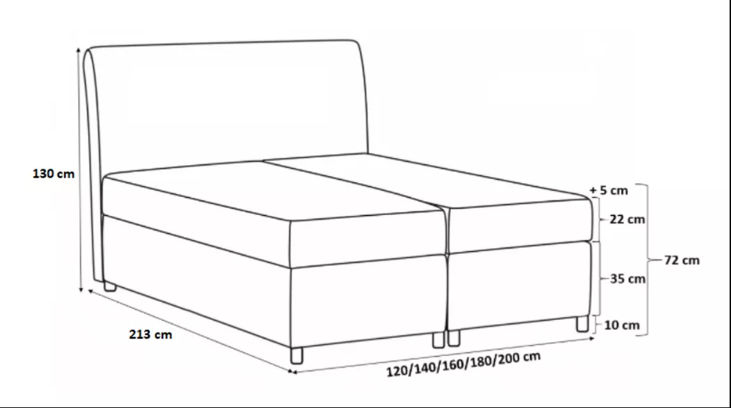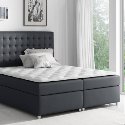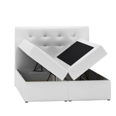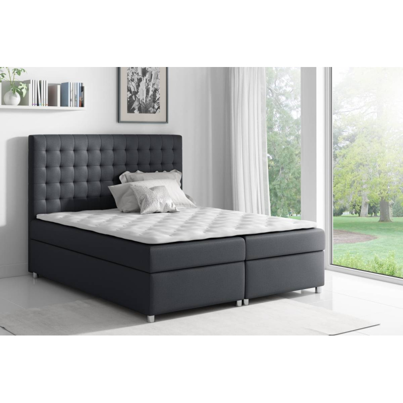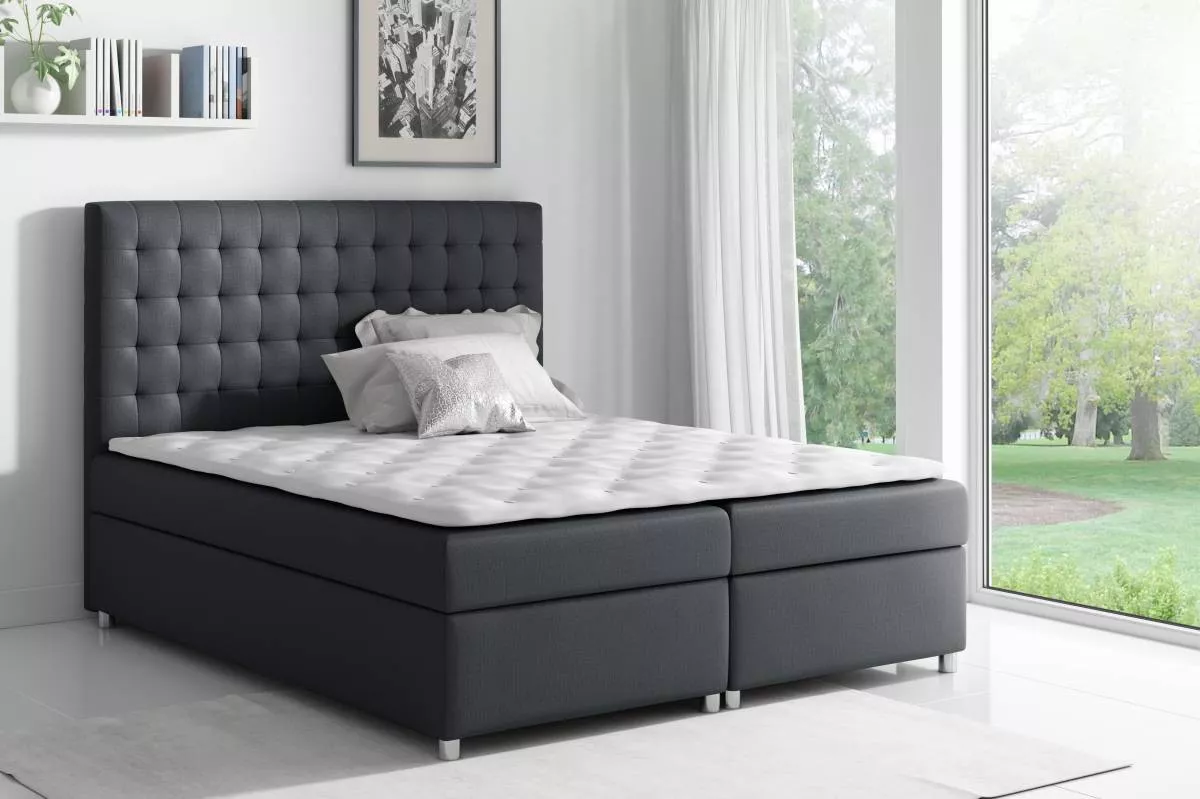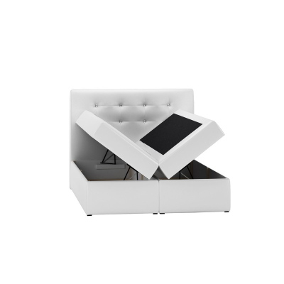 Moderní a precizně prošitá postel přinese luxus do vaší ložnice. Velmi odolná a pohodlná matrace s vysoce pružnou pěnou a elastickým topperem jsou zárukou plnohodnotného a kvalitního spánku. Stylové chromové nožičky dodávají posteli ještě více elegance. Velkou devízou postele jsou dva úložné prostory přístupné odklopením ložné plochy, které se vždy dají prakticky využít.