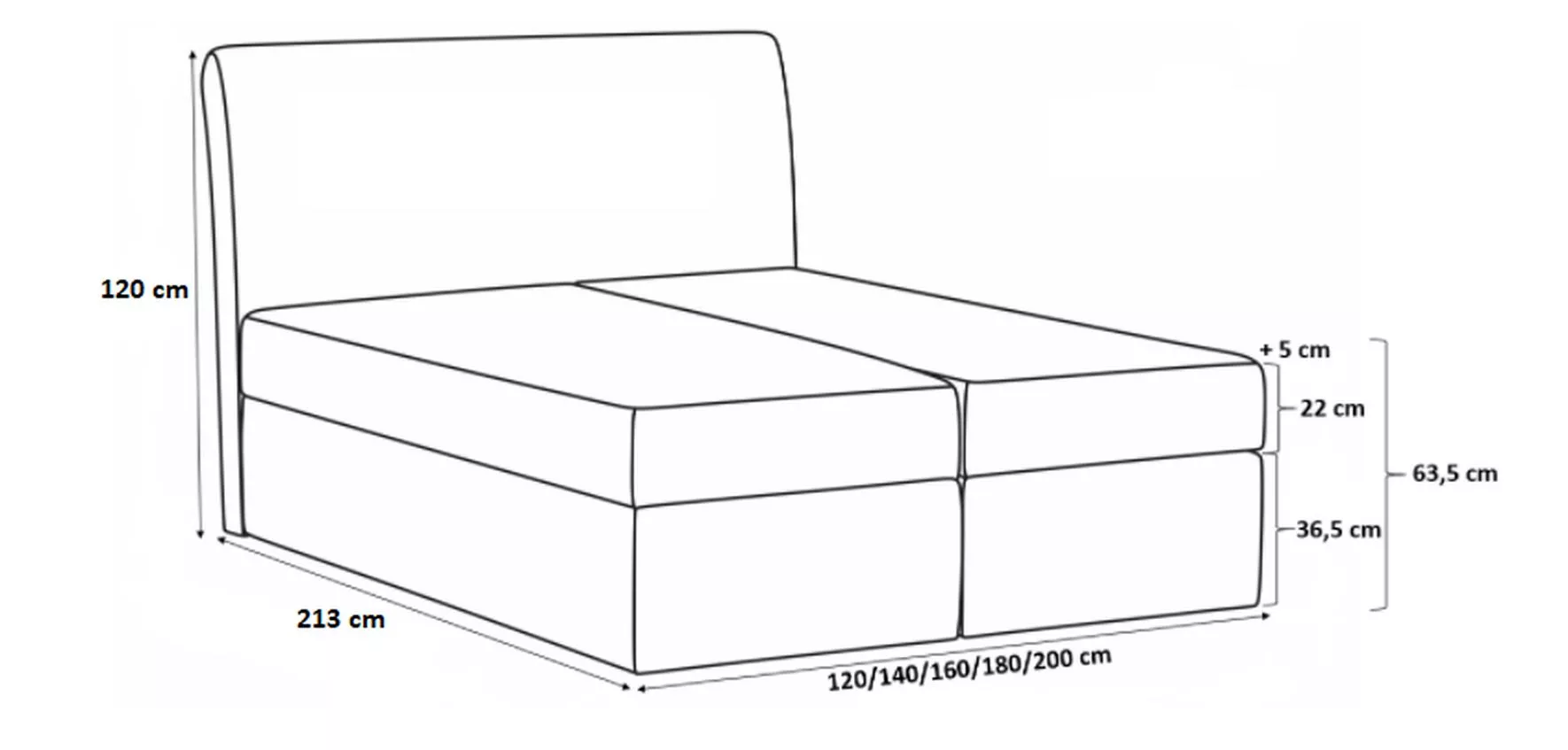 Boxspringová postel GERY ohromí svým jednoduchým designem. Vysoké a prošívané čelo vypadá elegantně, navíc je i praktické. Komfortní spaní zaručí matrace vyplněná taštičkovými pružinami v kombinaci s pěnou T30. Součástí postele je úložný prostor s klasickým otevíráním ze stran.