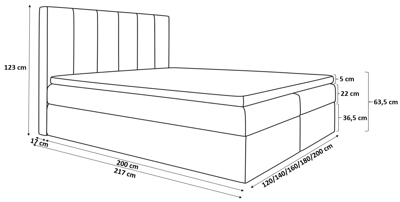 - ložná plocha: 180x200 cm