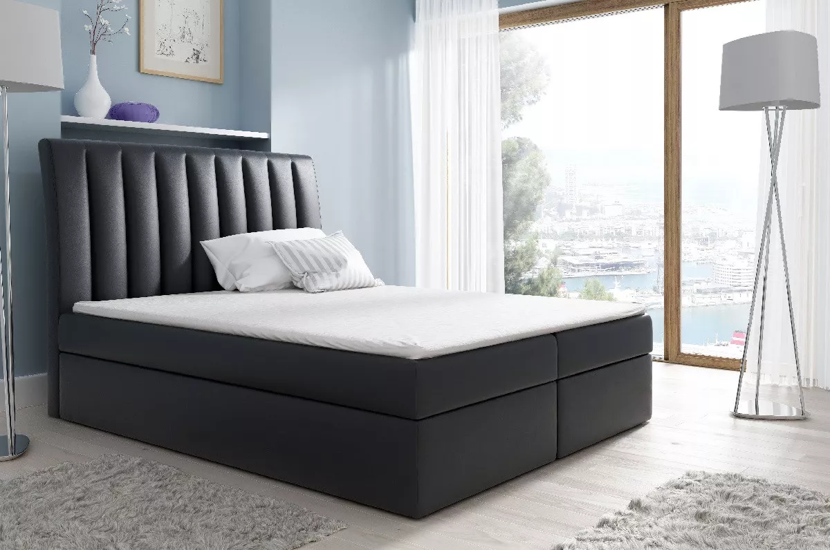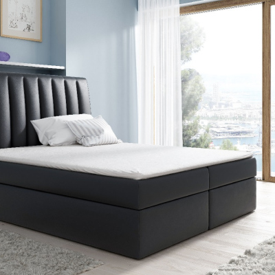 Kontinentální postel Kaspis černá eko kůže 180 + topper zdarma