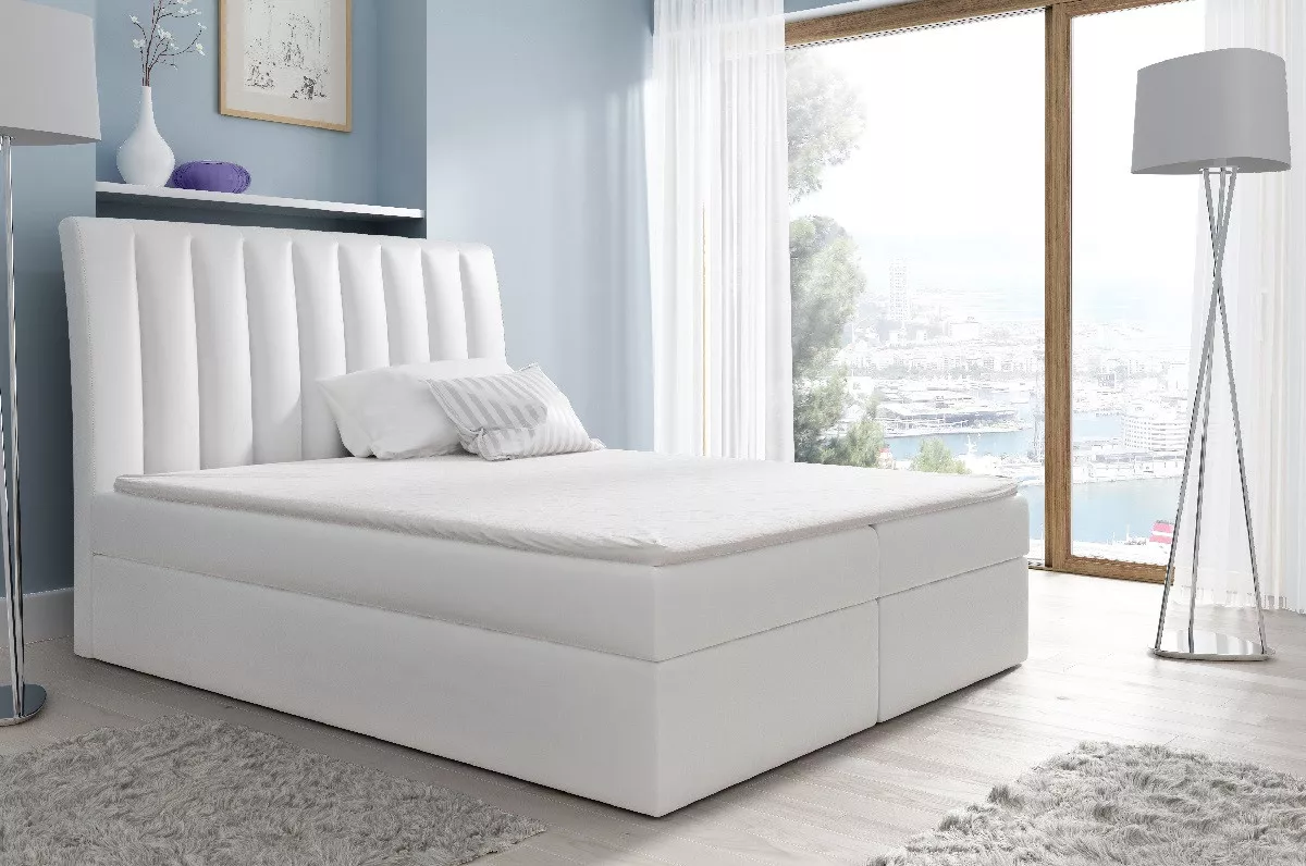 Kontinentální postel Kaspis bílá eko kůže 200 x 200 + topper zdarma