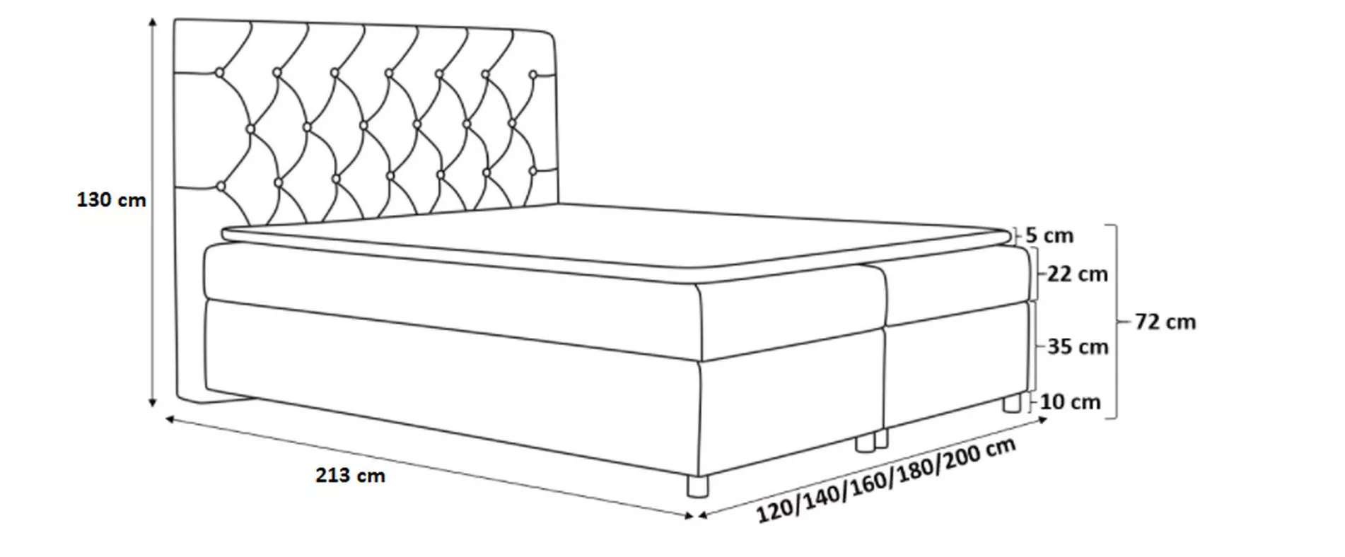 Prémiová čalouněná postel VIVIEN se hrdě hlásí mezi špičková komfortní dvojlůžka. Prošívané čalouněné čelo čnící vysoko ke stropu přímo svádí k uvelebení se s dobrou knihou a něčím na zub. Zdobné knoflíky ve švech jsou precizně zapravené a podtrhují celkový smysl pro detail. Spací plocha se pyšní výškou 72 cm. To je zárukou maximálního pohodlí při vstávání i po těžkém a únavném dni. Svrchní část vestavěných matrací kryje luxusní topper, který dostanete k posteli jako dárek.
