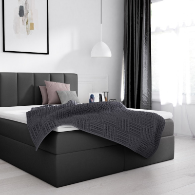 Stylová manželská postel Sven s úložným prosotrem černá eko kůže 160 x 200 + topper