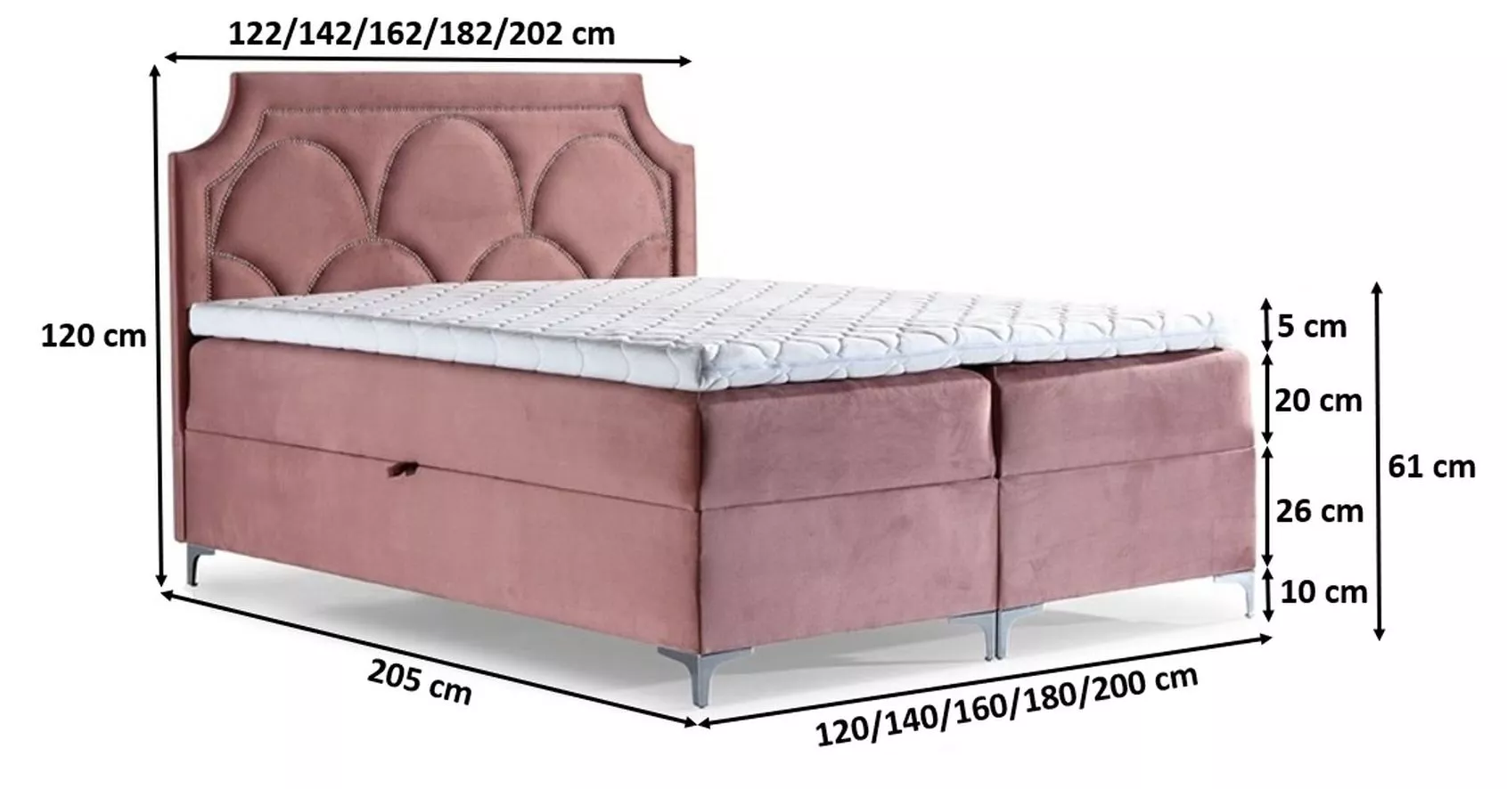 Čalouněná postel CASSANDRA, jejíž rám je vyroben z celodřevěné konstrukce pro stabilitu a pevnost. Polstrované čelo poskytne relaxaci během dne. Vyvýšená spací plocha pro pohodlí vašeho vstávání. Komfort spánku zajistí matrace, která je vyplněná kombinací taštičkových pružin s vysoce elastickou pěnou T30. Pod matracemi naleznete úložný prostor.