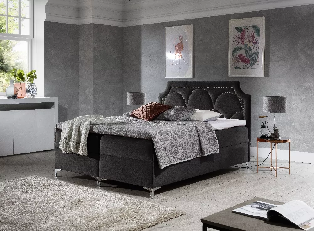 Přepychová postel Cassandra 160x200, šedá + TOPPER