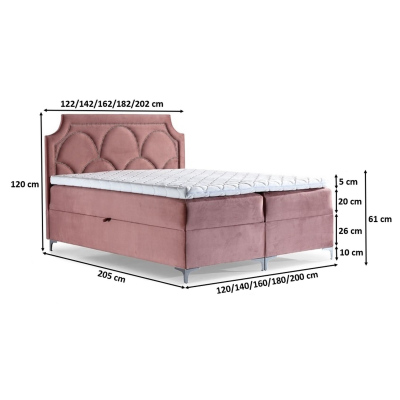Přepychová postel Cassandra 180x200, starorůžová + TOPPER