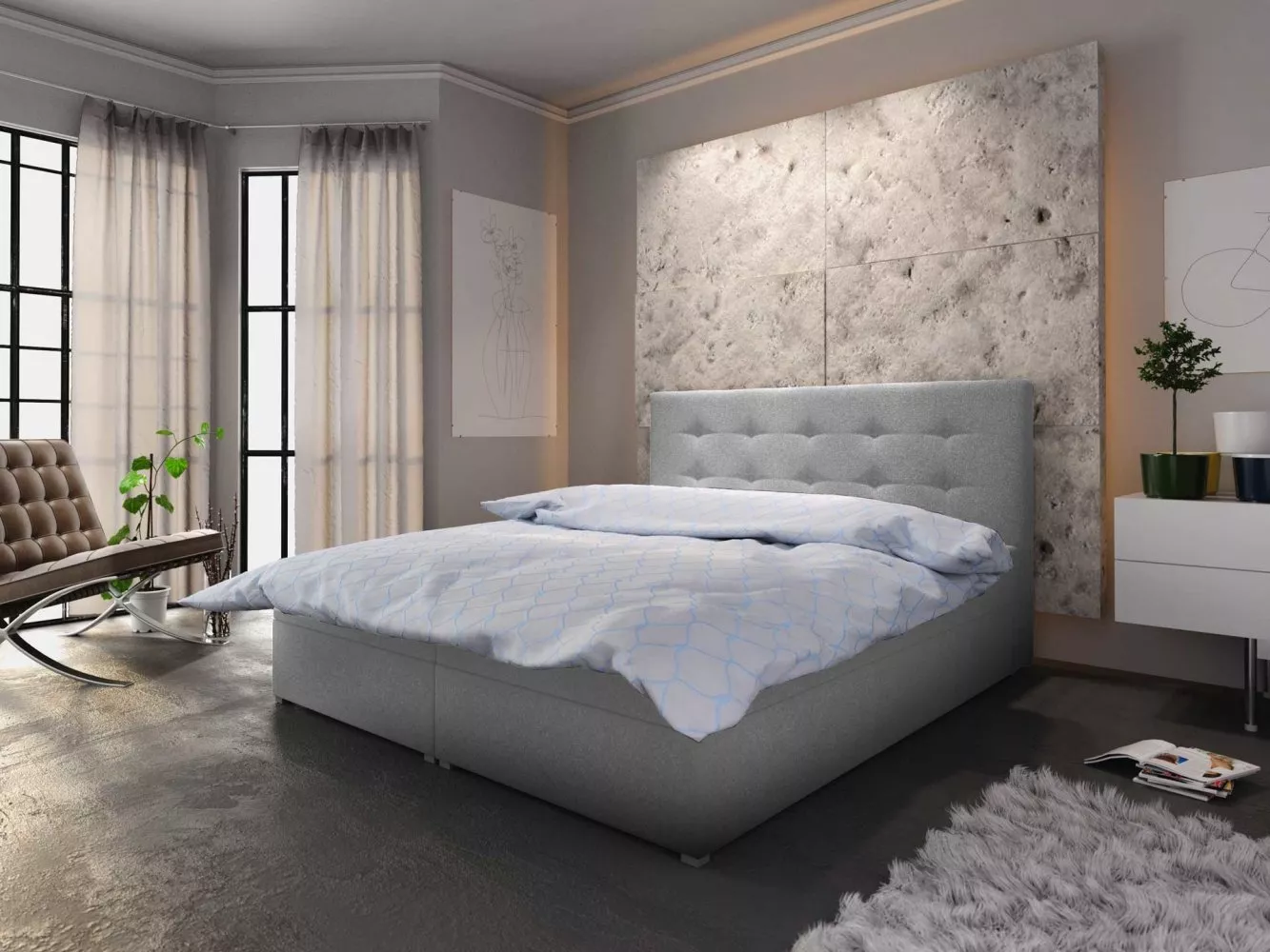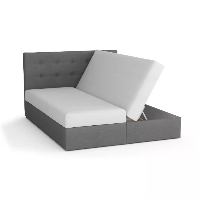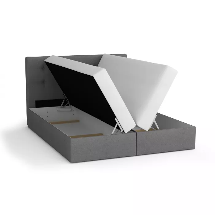 Boxspringová postel STIG I je celočalouněná omyvatelnou látkou. Její součástí je měkce polstrované čelo, dva úložné prostory, dvě matrace a rošty. Postel je možné rozdělit na dvě samostatná jednolůžka.