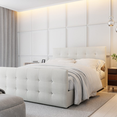 Hledáte pro sebe a svou drahou polovičku postel, na které bude každé válení nezapomenutelným zážitkem? Pořiďte si čalouněnou manželskou postel, která díky pohodlné matraci z bonellových pružin a studené pěny uložené na dřevěném roštu výšky 6 cm vám dopřeje pohodlí a komfort při odpočinku. Složení ložné plochy se snadno přizpůsobí vaší postavě. Pokud vyklopením zvednete matraci, naleznete úložný prostor, do kterého si schováte všechny své vzácné poklady nebo alespoň peřiny. Dle rozměrů vaší ložnice si postel vyberte v jedné ze 3 variant ložné plochy. Moderní postel boxspring je čalouněná potahovou látkou, která je omyvatelná.