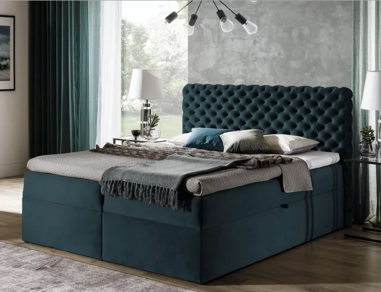 Čalouněná postel 160x200 CLARITA - modrozelená + topper ZDARMA