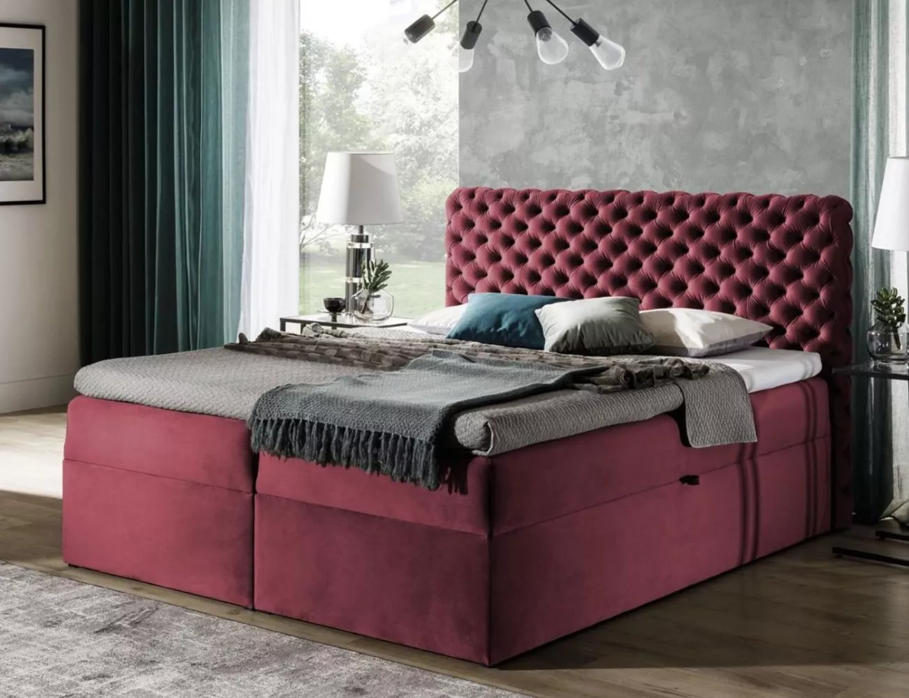Čalouněná postel 180x200 CLARITA - červená + topper ZDARMA