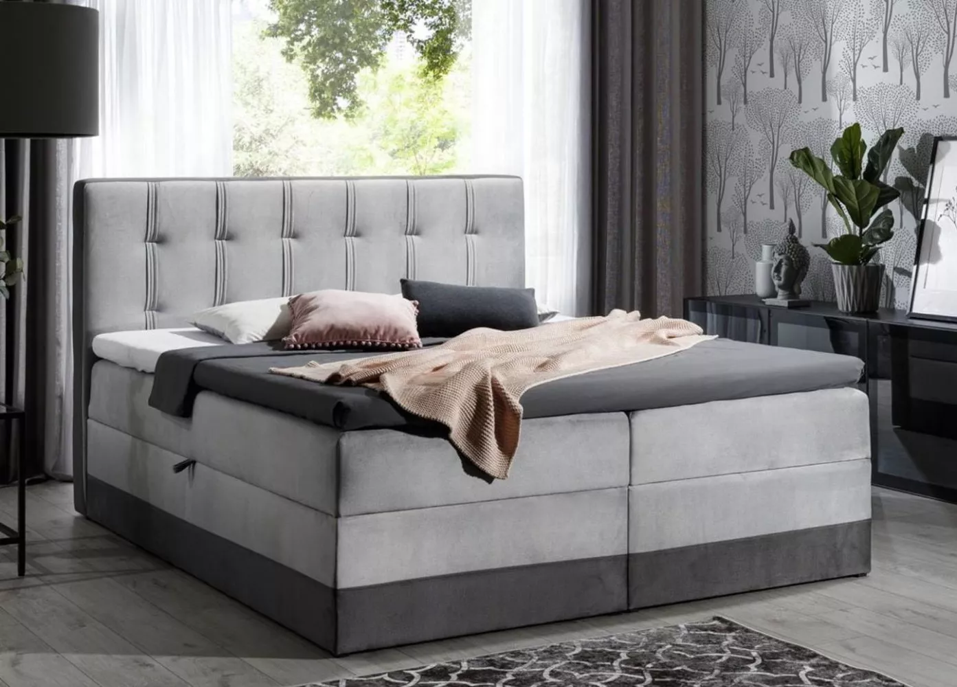 Čalouněná postel boxspring 140x200 MARYLIN - šedá + topper ZDARMA