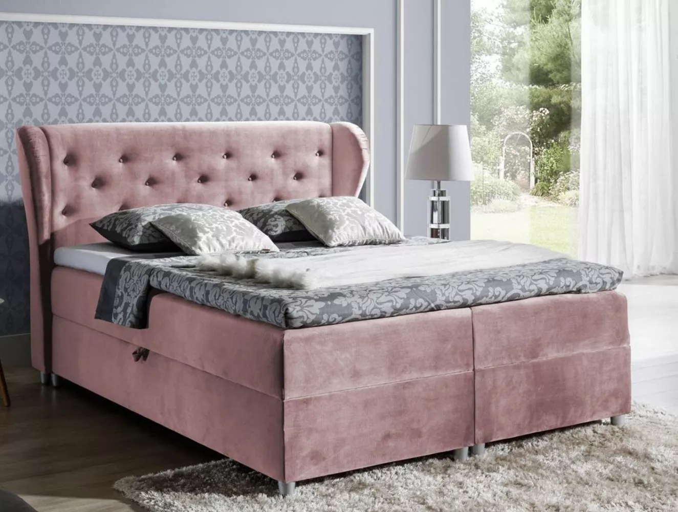 Boxspringová postel 140x200 PADMA - růžová + topper ZDARMA