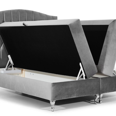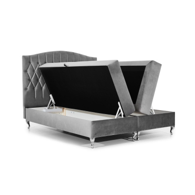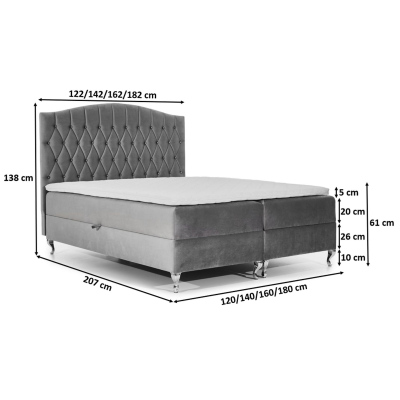 Díky krásným barvám a fantastickému potahovému materiálu je postel PEGGY skutečně královskou postelí. Díky sametové látce, která obklopuje rám postele a čelo, se budete v ložnici cítit výjimečně. Hlavní matraci tvoří taštičkové pružiny a vysoce elastická pěna T30. Komfort spánku zvyšuje topper z vysoce elastické pěny. Prošívané čelo, o které se opíráme večer před usnutím u televize či při čtení oblíbené knihy, má elegantní prošívání, které je zdobeno krystaly. Postel má dva úložné prostory, které pomáhají udržovat pořádek.