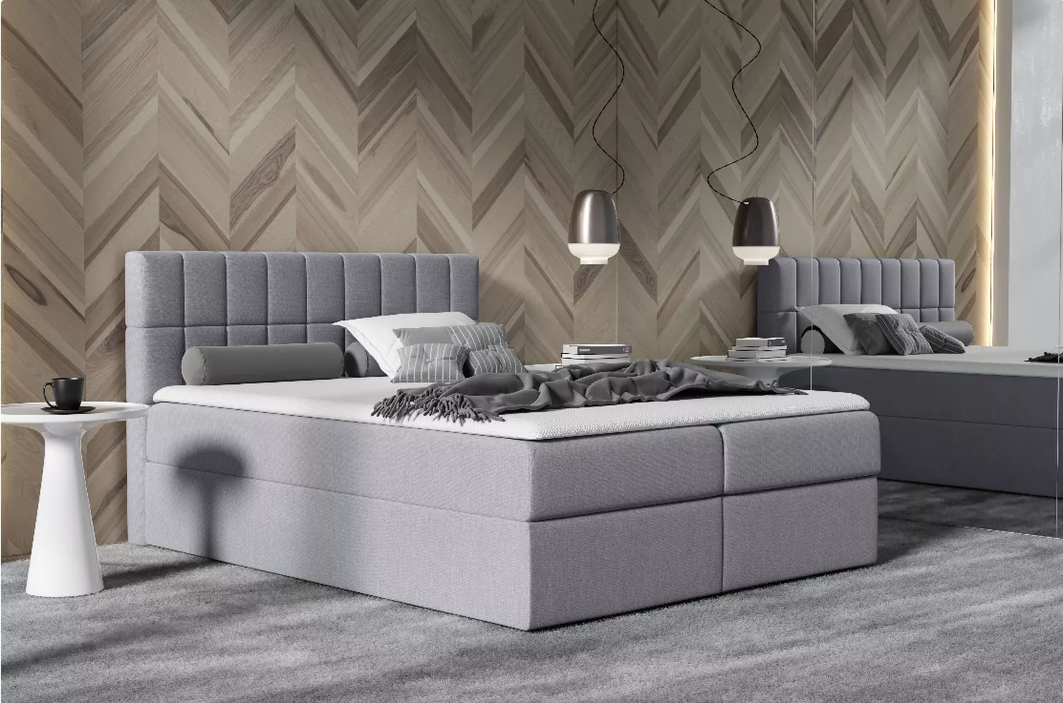Manželská čalouněná postel 180x200 KATE - šedá + topper ZDARMA