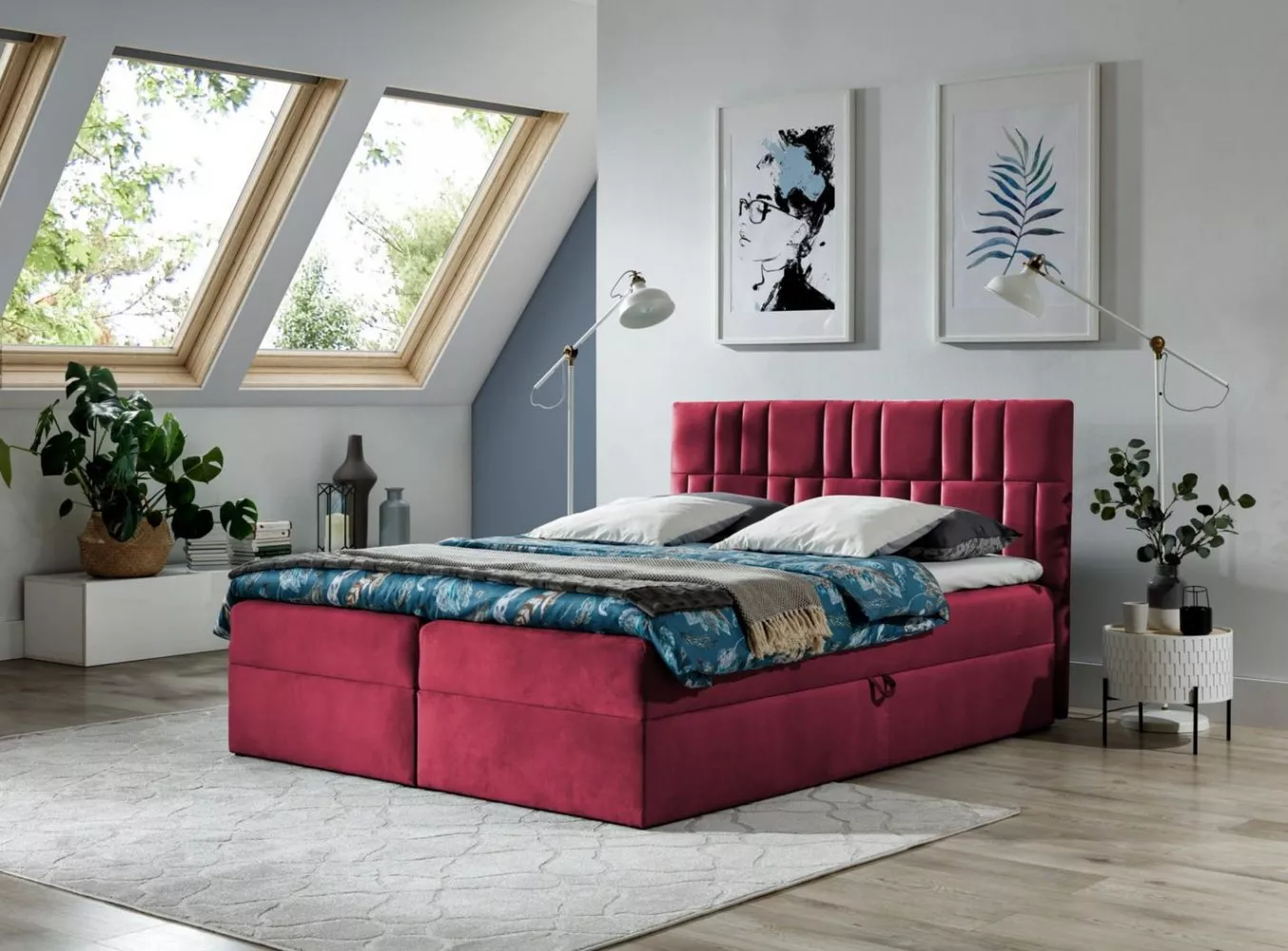 Kontinentální postel 160x200 IVANA 3 - červená + topper ZDARMA