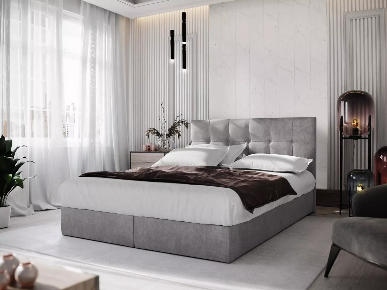 I v malé ložnici můžete mít dokonalou moderní postel, která vám dodá tu pravou atmosféru. Elegantní boxspring s vysokým čelem, pohodlnou matrací a úložným prostorem, který se tak hodí v malých prostorech.