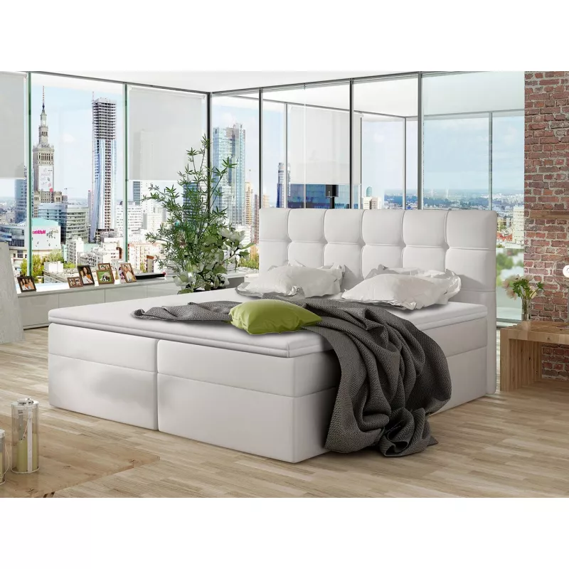 Boxspringová manželská postel 140x200 CLARA - bílá ekokůže + topper ZDARMA
