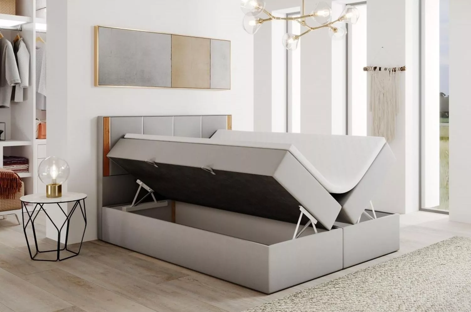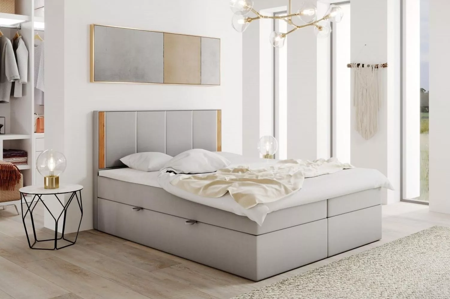 Odpočiňte si v manželské boxspring posteli Puram, která poskytuje komfort jako v těch nejlepších hotelech. Postel má netradiční čelo s ozdobnými prvky. Díky úložnému prostoru, do kterého se dostanete vyklopením roštů, vám přinese postel do vaší ložnice kromě své elegance i praktickou stránku.