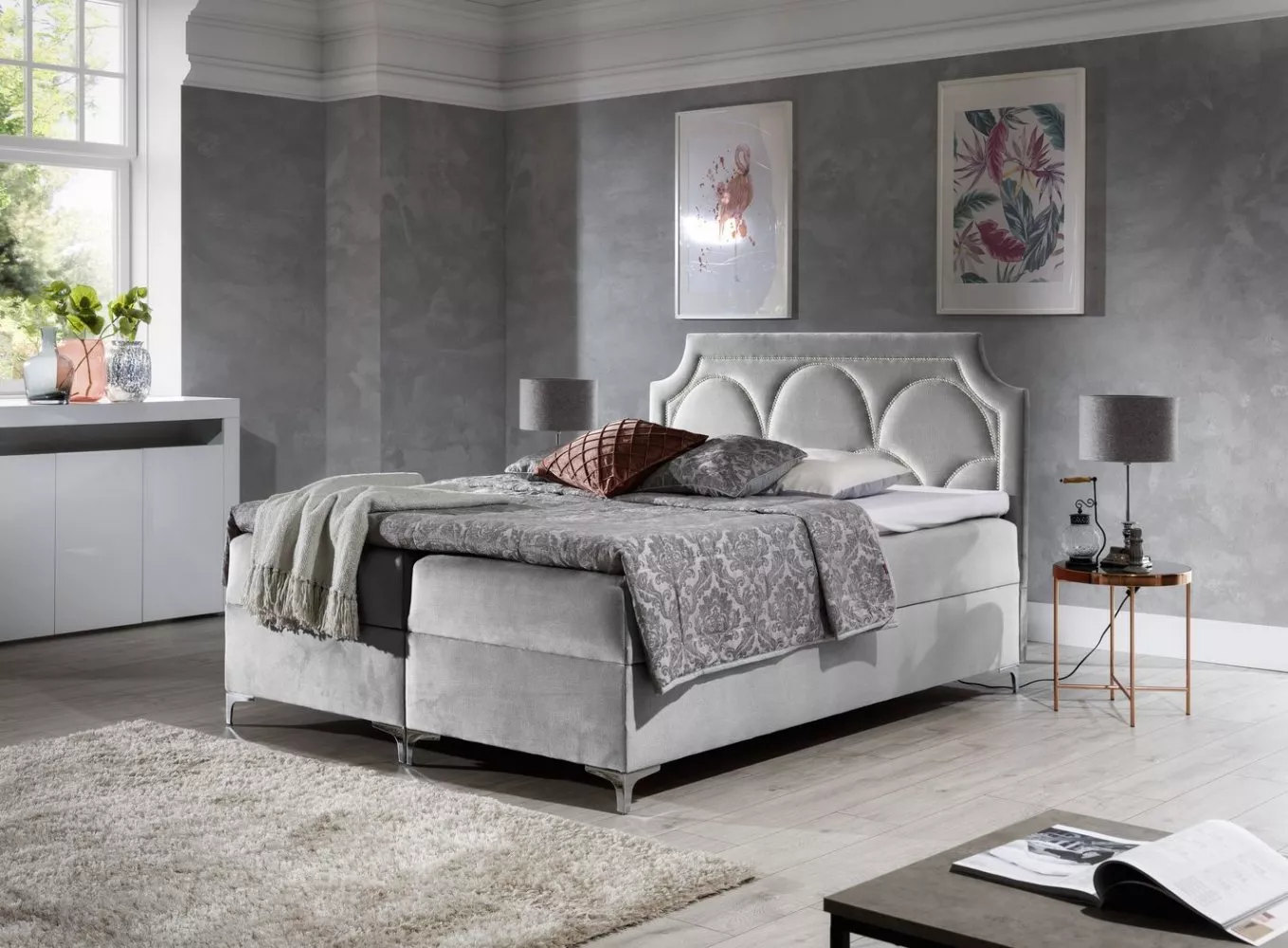 Přepychová postel CASSANDRA - 200x200, šedá + topper ZDARMA