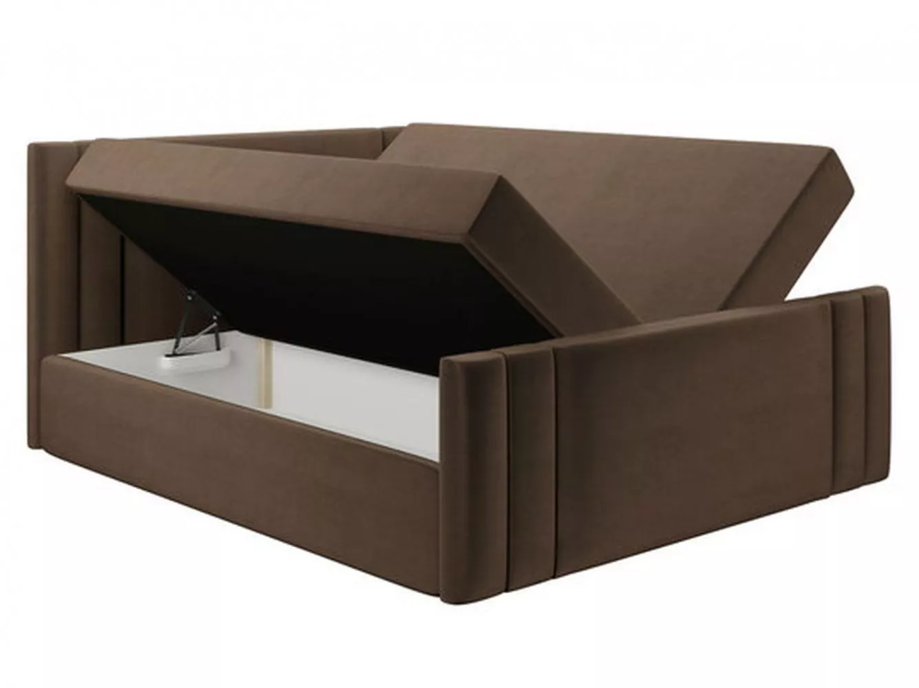 Boxspringová čalouněná postel CELESTA nabízí elegantní zpracování v moderním stylu. Dominantním prvkem je decentně zdobené čelo. Součástí je rošt a zabudovaná matrace tvořena bonellovými pružinami a pěnou T30. Vysoký komfort při spánku a odpočinku podpoří pěnový topper. Pod lůžky naleznete úložný prostor, ve kterém můžete uschovat sezónní oblečení či náhradní lůžkoviny.