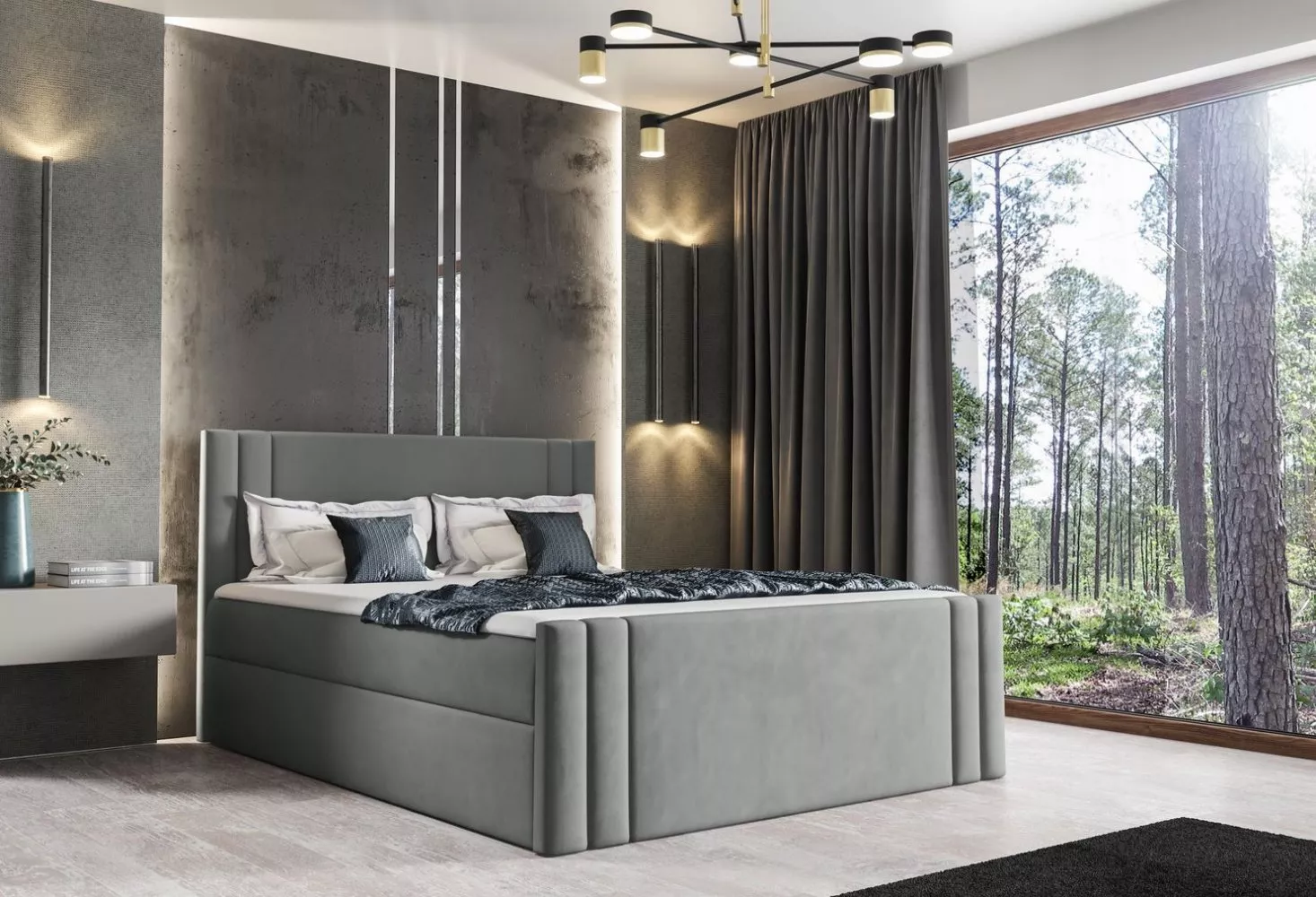 Boxspringová čalouněná postel CELESTA nabízí elegantní zpracování v moderním stylu. Dominantním prvkem je decentně zdobené čelo. Součástí je rošt a zabudovaná matrace tvořena bonellovými pružinami a pěnou T30. Vysoký komfort při spánku a odpočinku podpoří pěnový topper. Pod lůžky naleznete úložný prostor, ve kterém můžete uschovat sezónní oblečení či náhradní lůžkoviny.