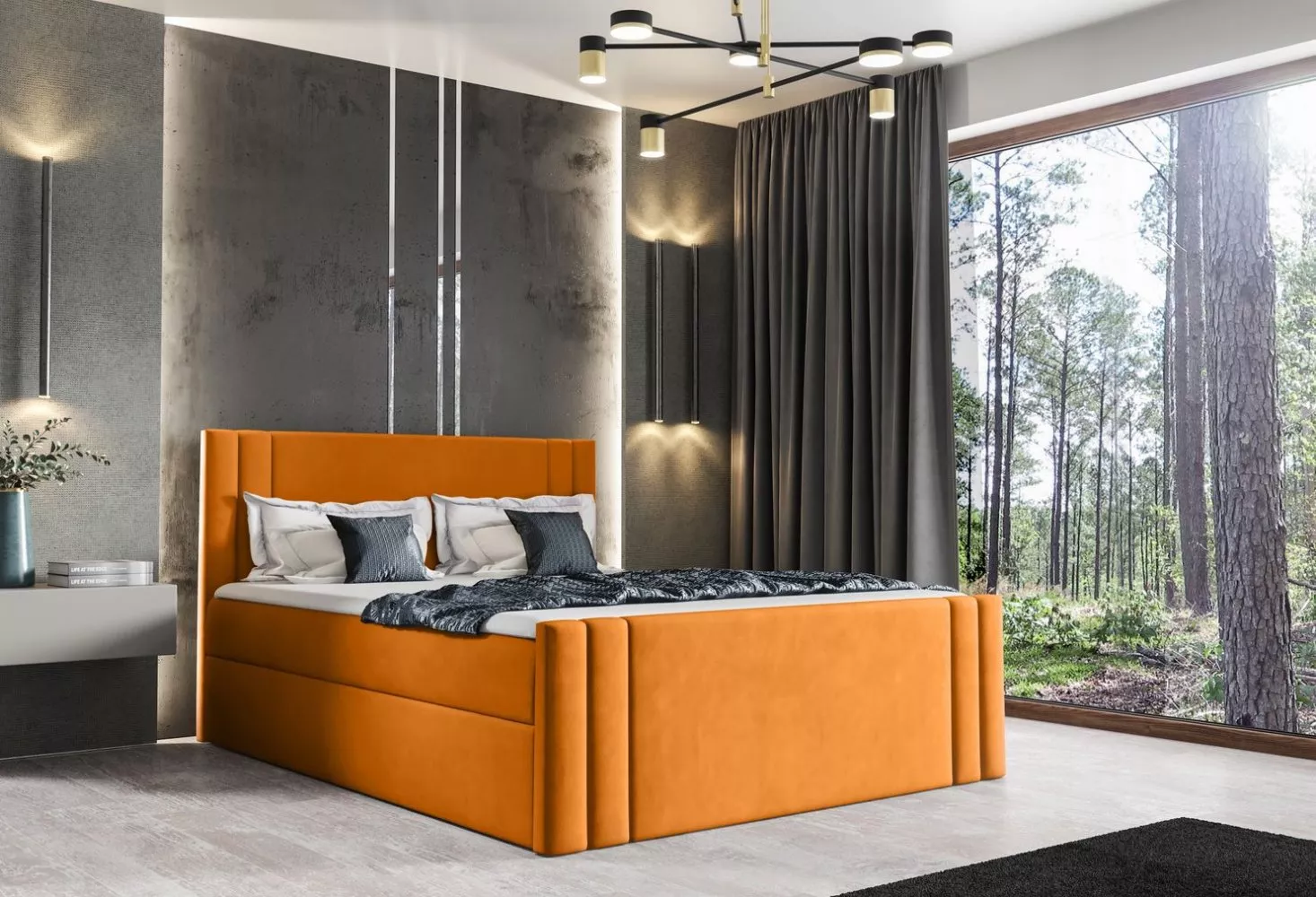 Boxspringová čalouněná postel CELESTA nabízí elegantní zpracování v moderním stylu. Dominantním prvkem je decentně zdobené čelo. Součástí je rošt a zabudovaná matrace tvořena bonellovými pružinami a pěnou T30. Vysoký komfort při spánku a odpočinku podpoří pěnový topper. Pod lůžky naleznete úložný prostor, ve kterém můžete uschovat sezónní oblečení či náhradní lůžkoviny.
