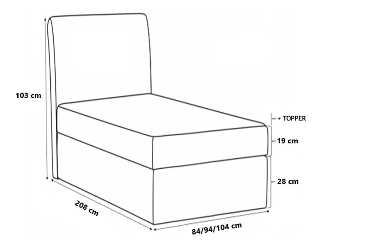 Boxspringová čalouněná postel Celesta Mini nabízí elegantní zpracování v moderním stylu. Dominantním prvkem je decentně zdobené čelo. Součástí je rošt a zabudovaná matrace tvořena bonellovými pružinami a pěnou T30. Vysoký komfort při spánku a odpočinku podpoří pěnový topper. Pod lůžky naleznete úložný prostor, ve kterém můžete uschovat sezónní oblečení či náhradní lůžkoviny.
