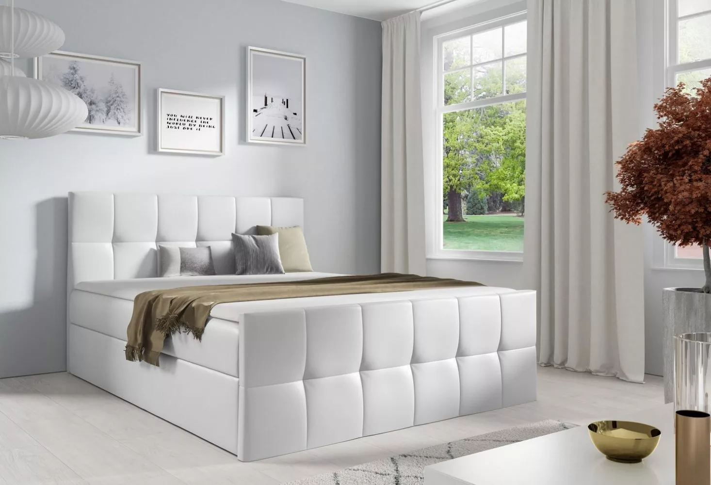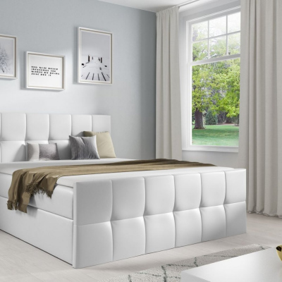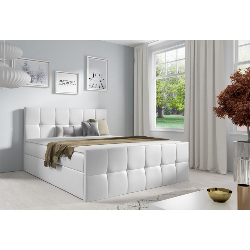 Manželská postel CHLOE - 160x200, bílá eko kůže + topper ZDARMA