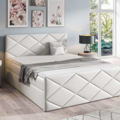 Postel s matrací a roštem HALKA - 140x200, bílá eko kůže + topper ZDARMA