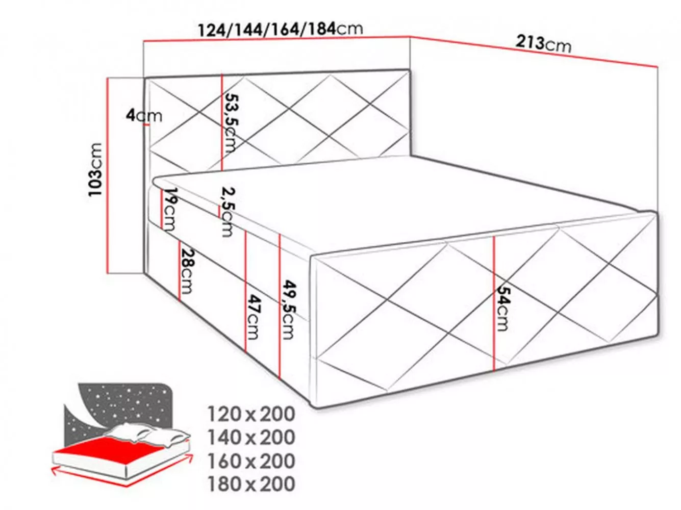 - ložná plocha: 160x200 cm