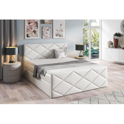 Postel s matrací a roštem HALKA - 160x200, bílá eko kůže + topper ZDARMA