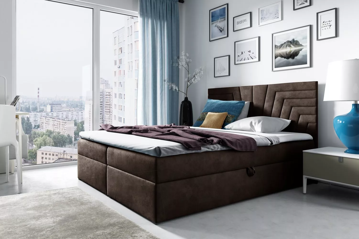 Čalouněná postel s prošívaným čelem SUSANA - 140x200, hnědá 1 + topper ZDARMA