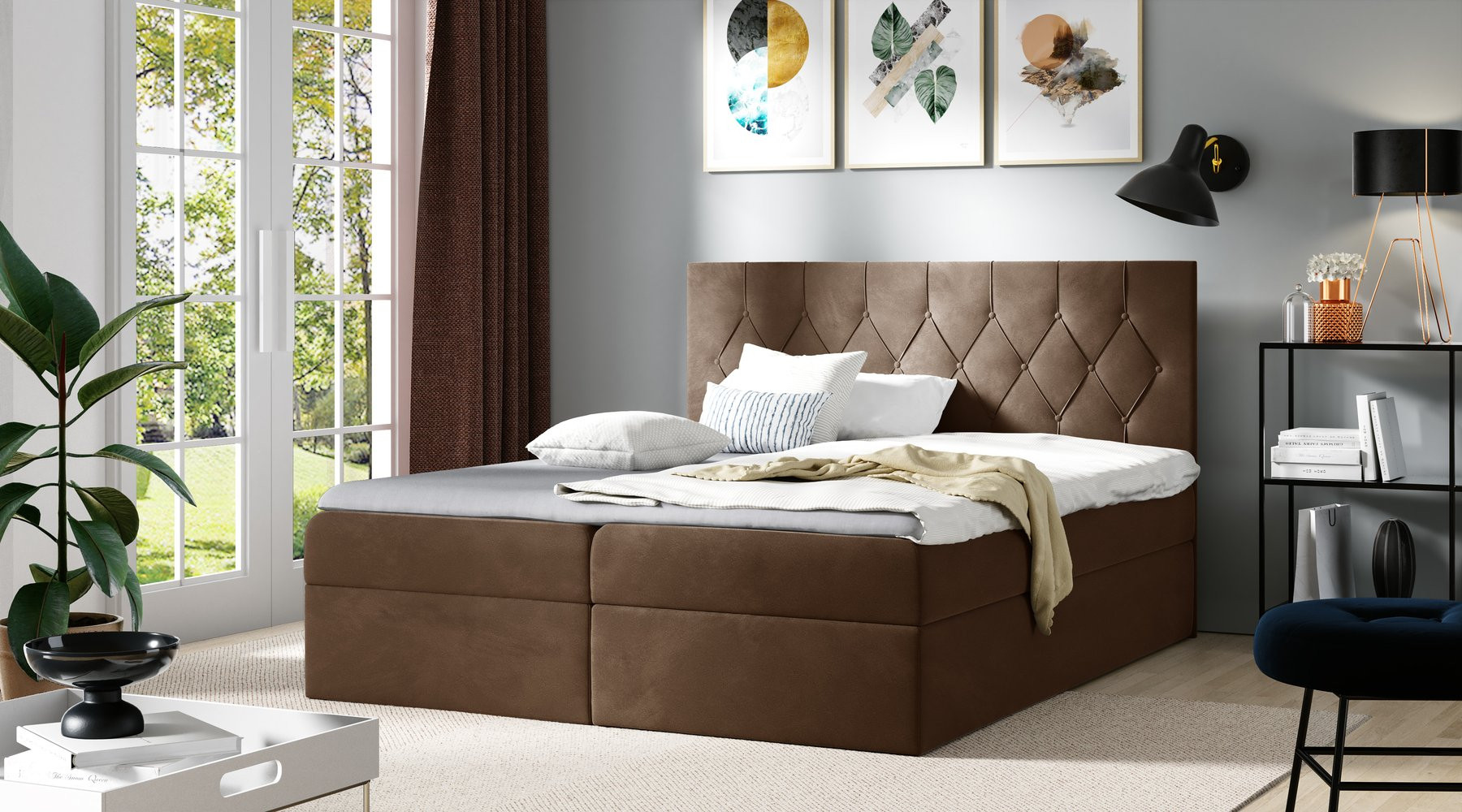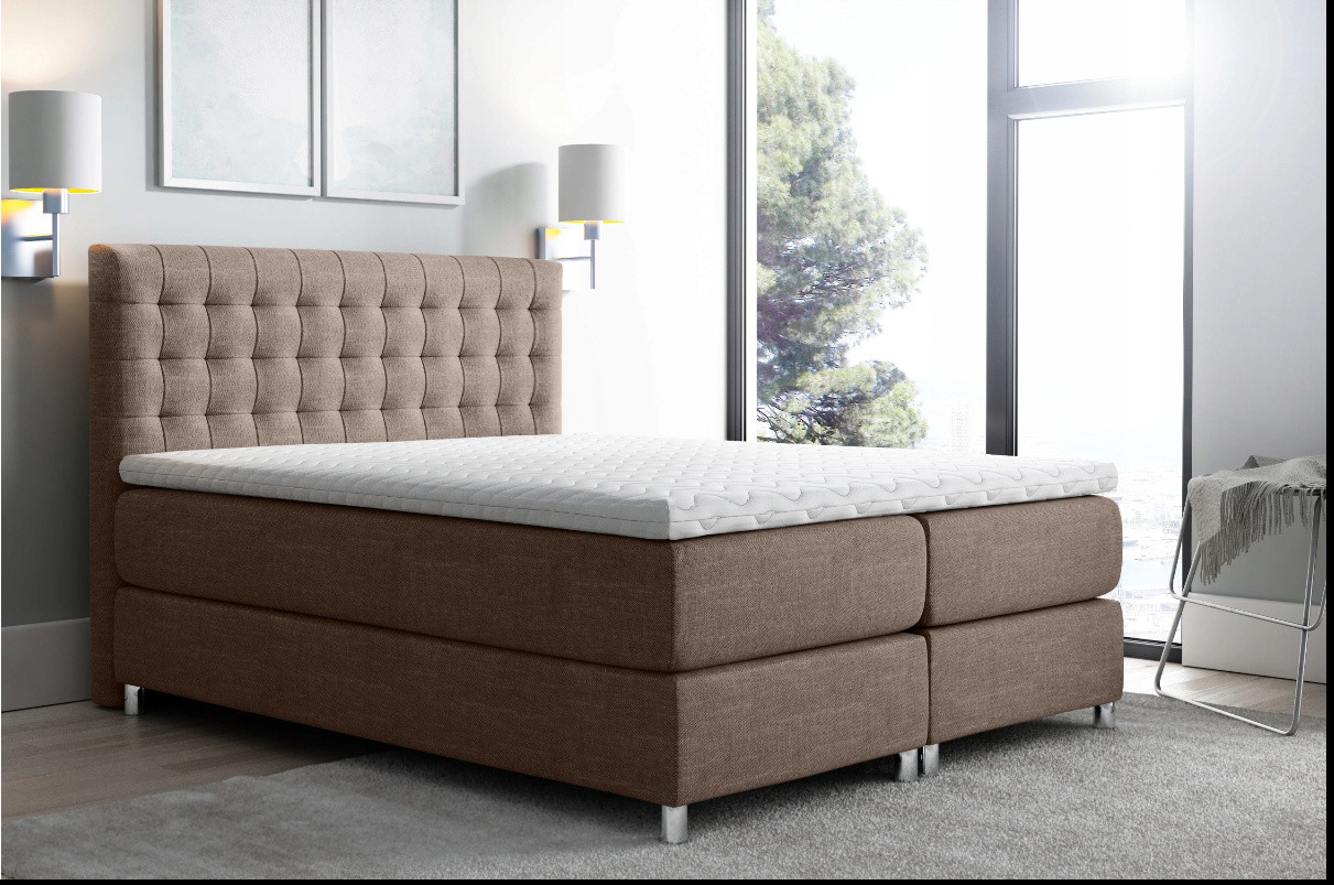Postel boxspring s prošívaným čelem ISAR - 200x200, hnědá 1 + topper ZDARMA
