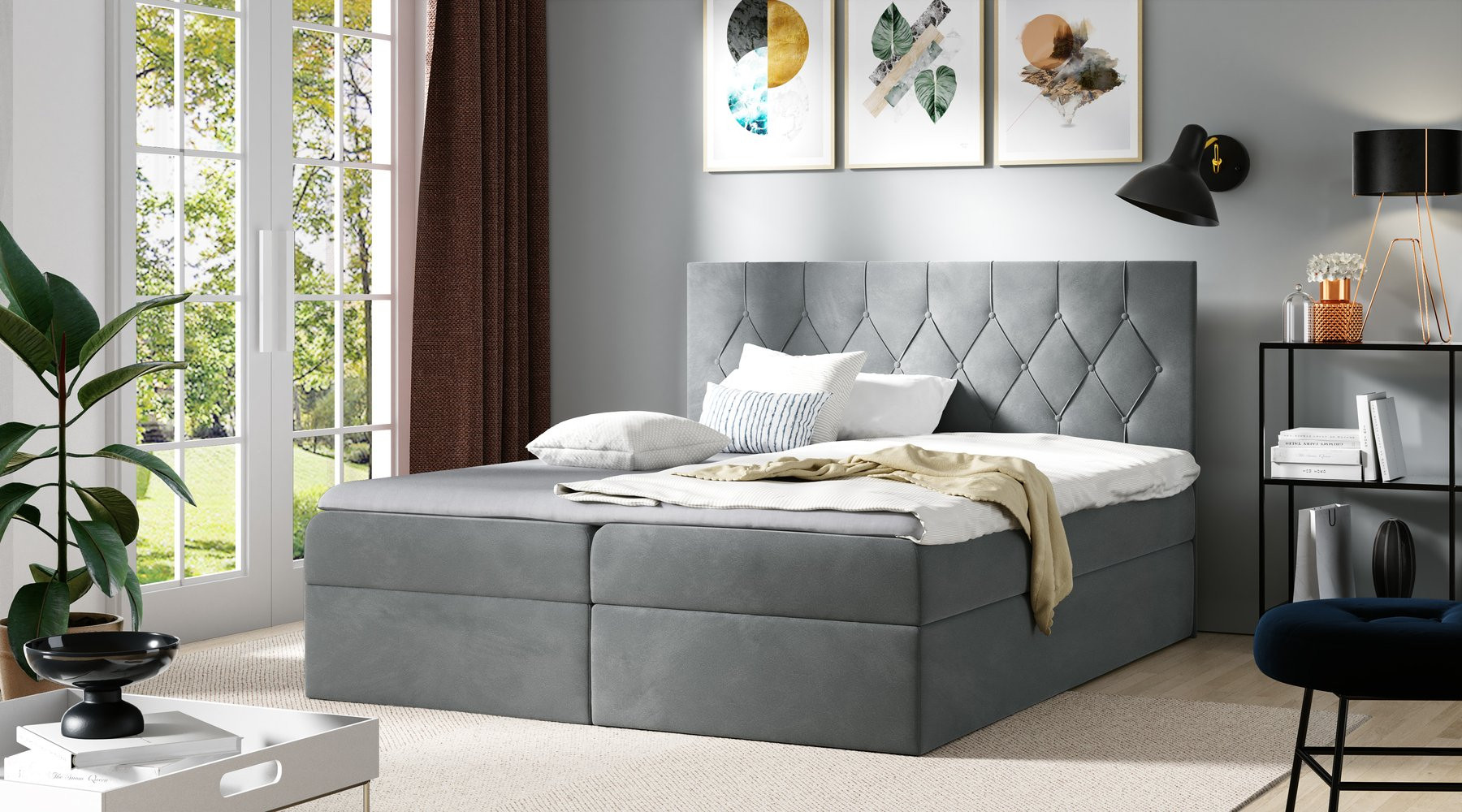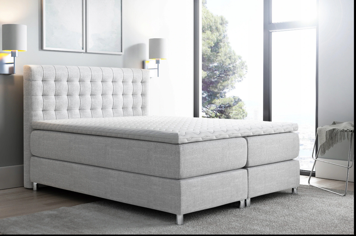Postel boxspring s prošívaným čelem ISAR - 200x200, šedá + topper ZDARMA