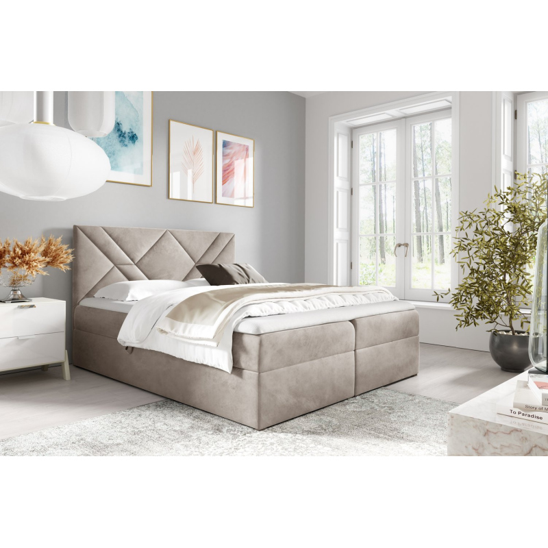 Boxspringová postel ASKOT - 120x200, béžová + topper ZDARMA