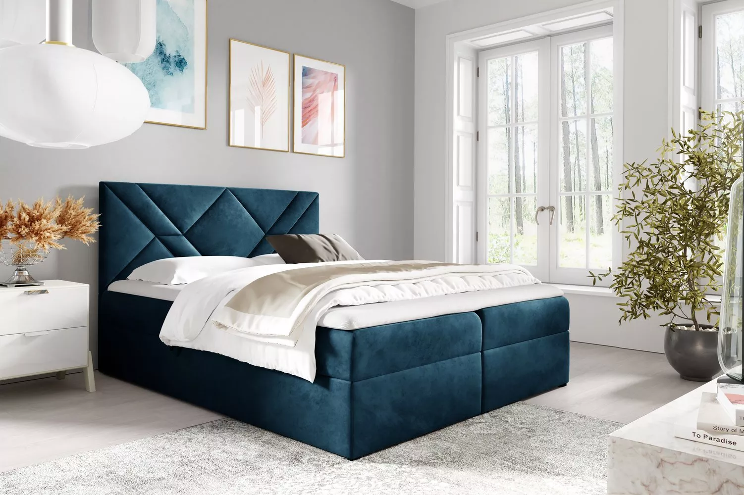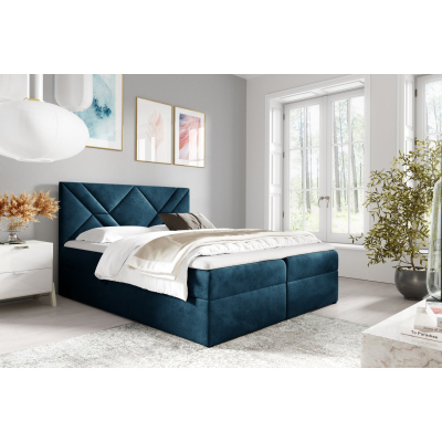 Boxspringová postel ASKOT - 180x200, modrá + topper ZDARMA