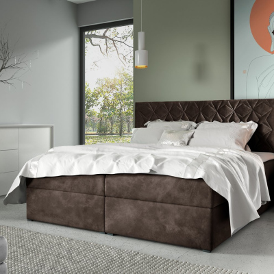 Postel boxspring s prošívaným čelem EUGENA - 120x200, hnědá 1 + topper ZDARMA
