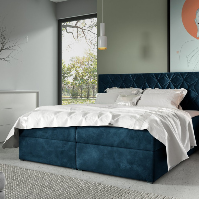 Postel boxspring s prošívaným čelem EUGENA - 200x200, modrá + topper ZDARMA