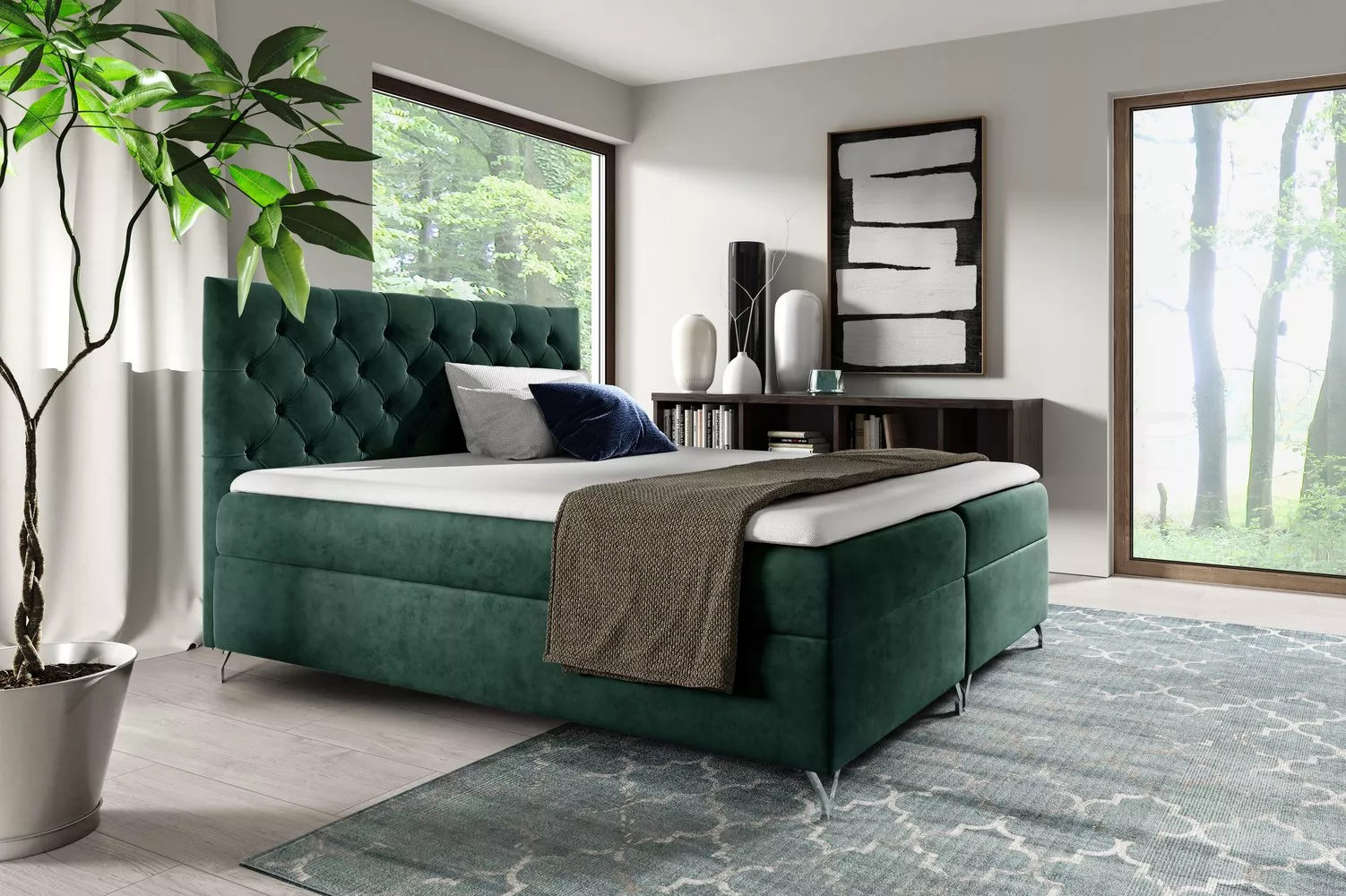 Boxspringová postel SHANNON - 140x200, zelená + topper ZDARMA