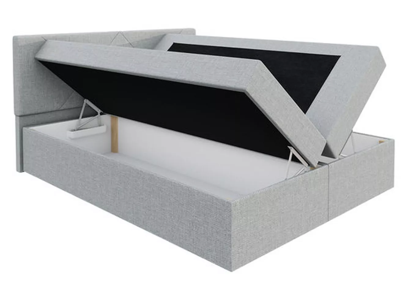 Součástí postele je rošt, matrace, úložný prostor a topper.